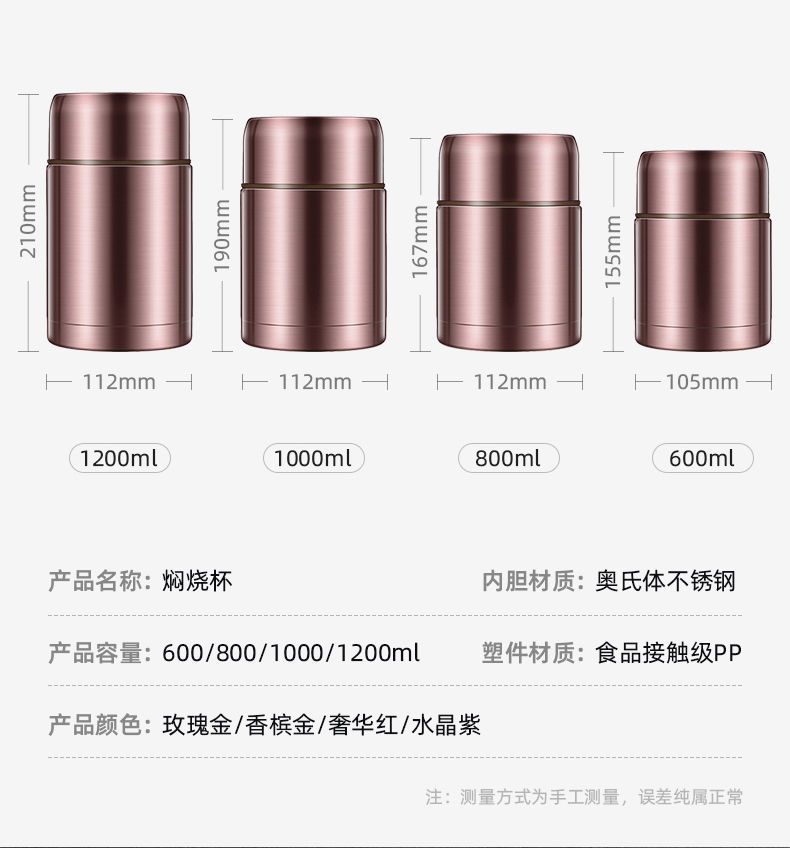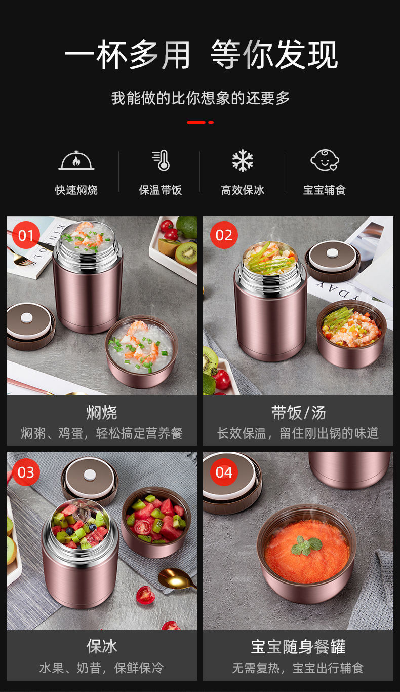 316 스테인레스 스틸 304 찐 비커 찐 냄비 찐 냄비 포장 냄비 학생과 사무실 학생을위한 다기능 열 절연 도시락