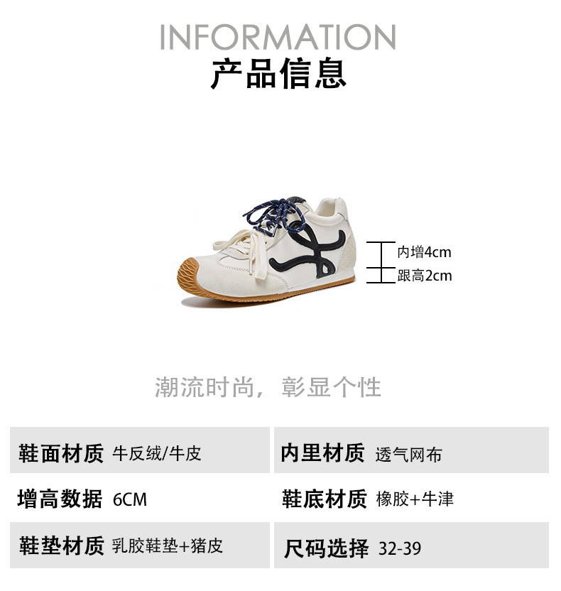 53181 미니 양 6CM 보이지 않는 내부 고조 캐주얼 신발 여성 발레 스타일 복고풍 도덕 훈련 스포츠 포레스트 검프 신발스토어 가기