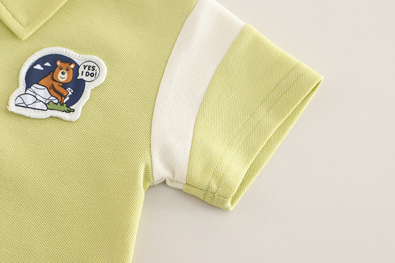 2025 년 새 여름 한국판 옷깃 곰 짧은 소매 어린이 세트 소년 투피스 반바지 아동복 세대스토어 가기