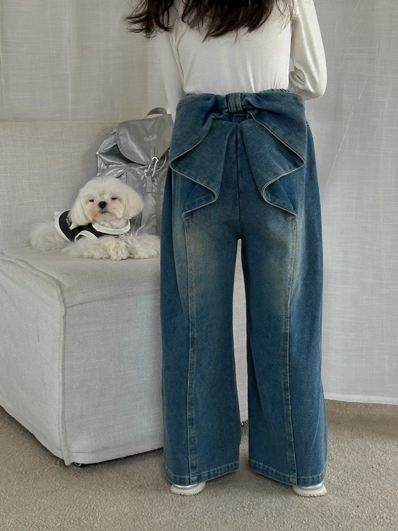 소녀 바지 봄과 가을 2025 새로운 어린이 넓은 다리 바지 큰 어린이 느슨한 활 스트레이트 바지 청바지스토어 가기
