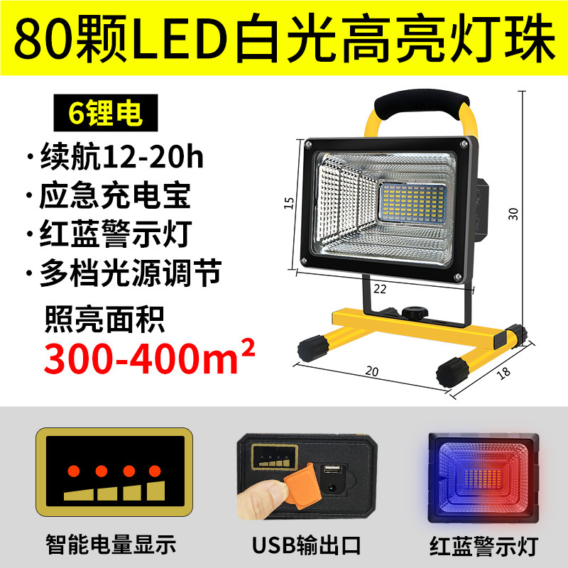• 80개의 램프 비드 6개의 리튬 배터리 - 배터리 수명 12-20시간