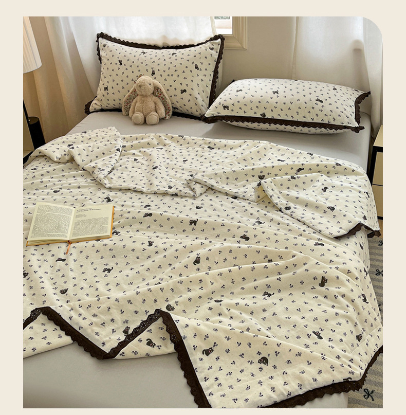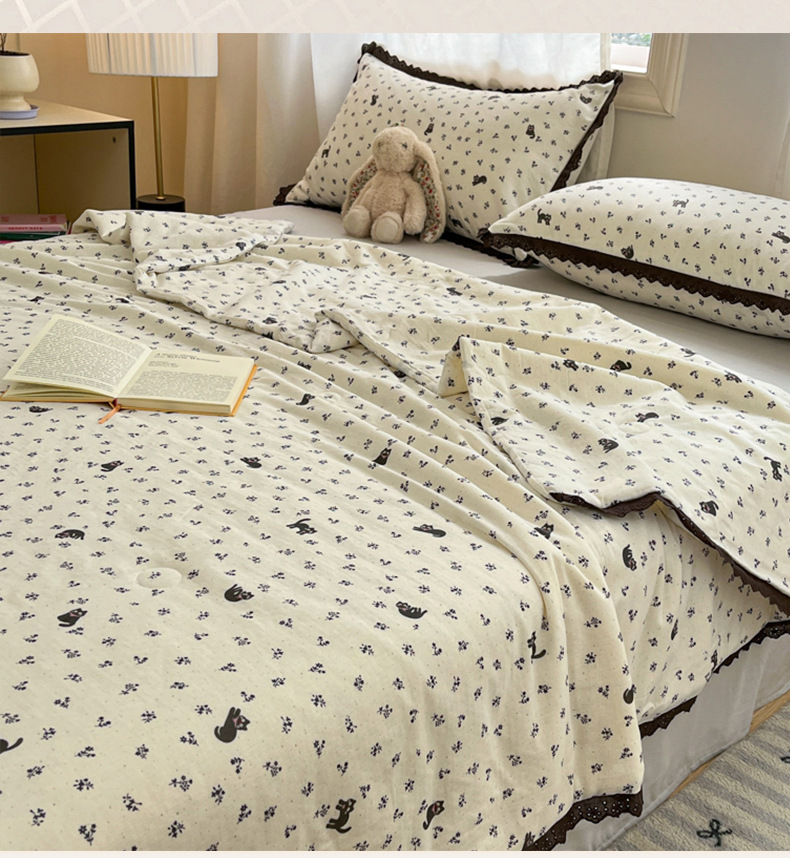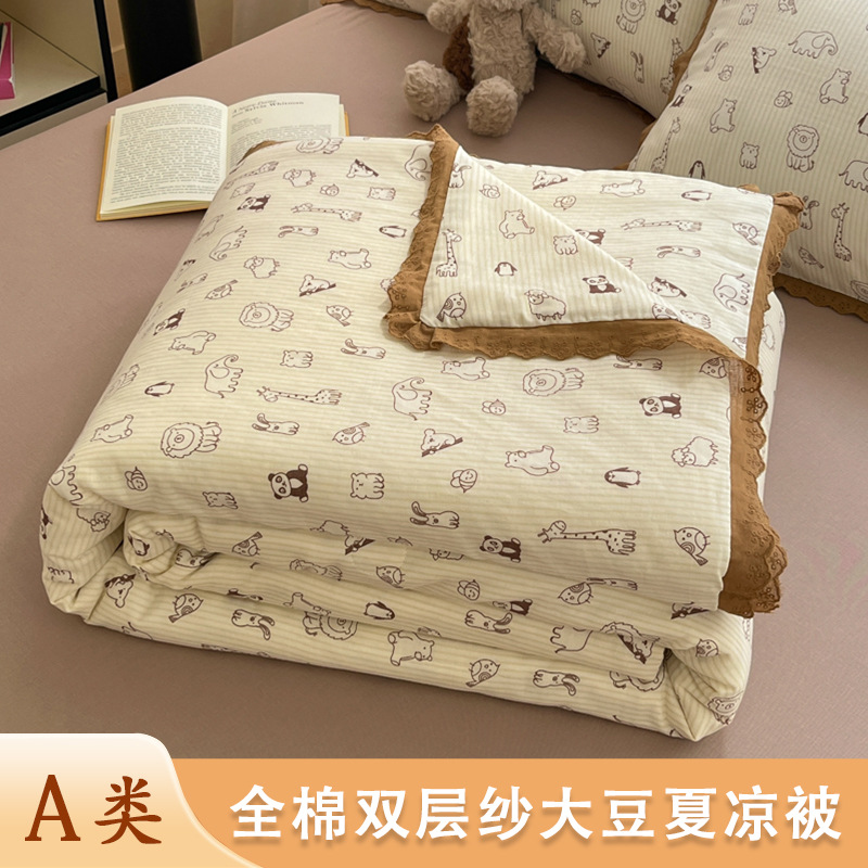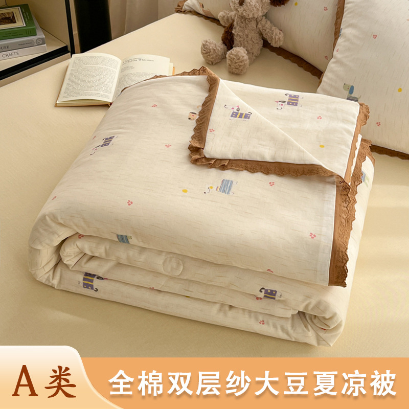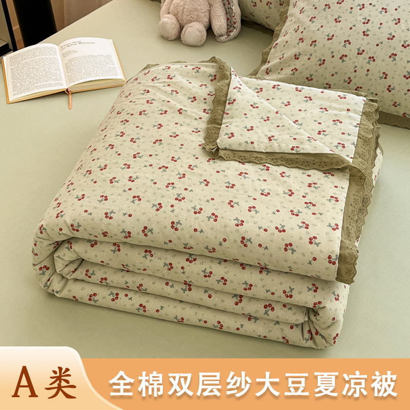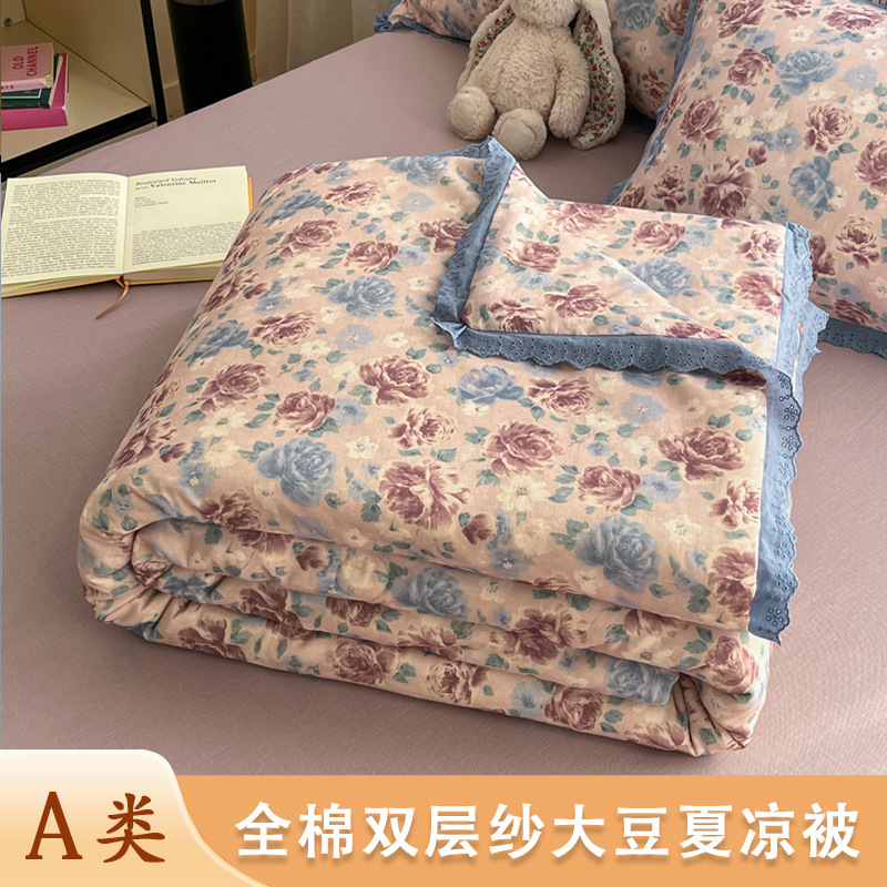 한국식 작은 레이스 코튼 더블 레이어 원사 여름 퀼트 클래스 A 모성 및 유아용 면사 여름 시원한 이불 어린이 콩 이불 에어컨 이불