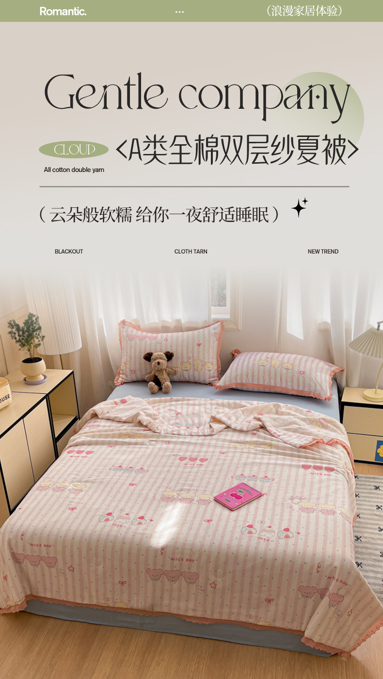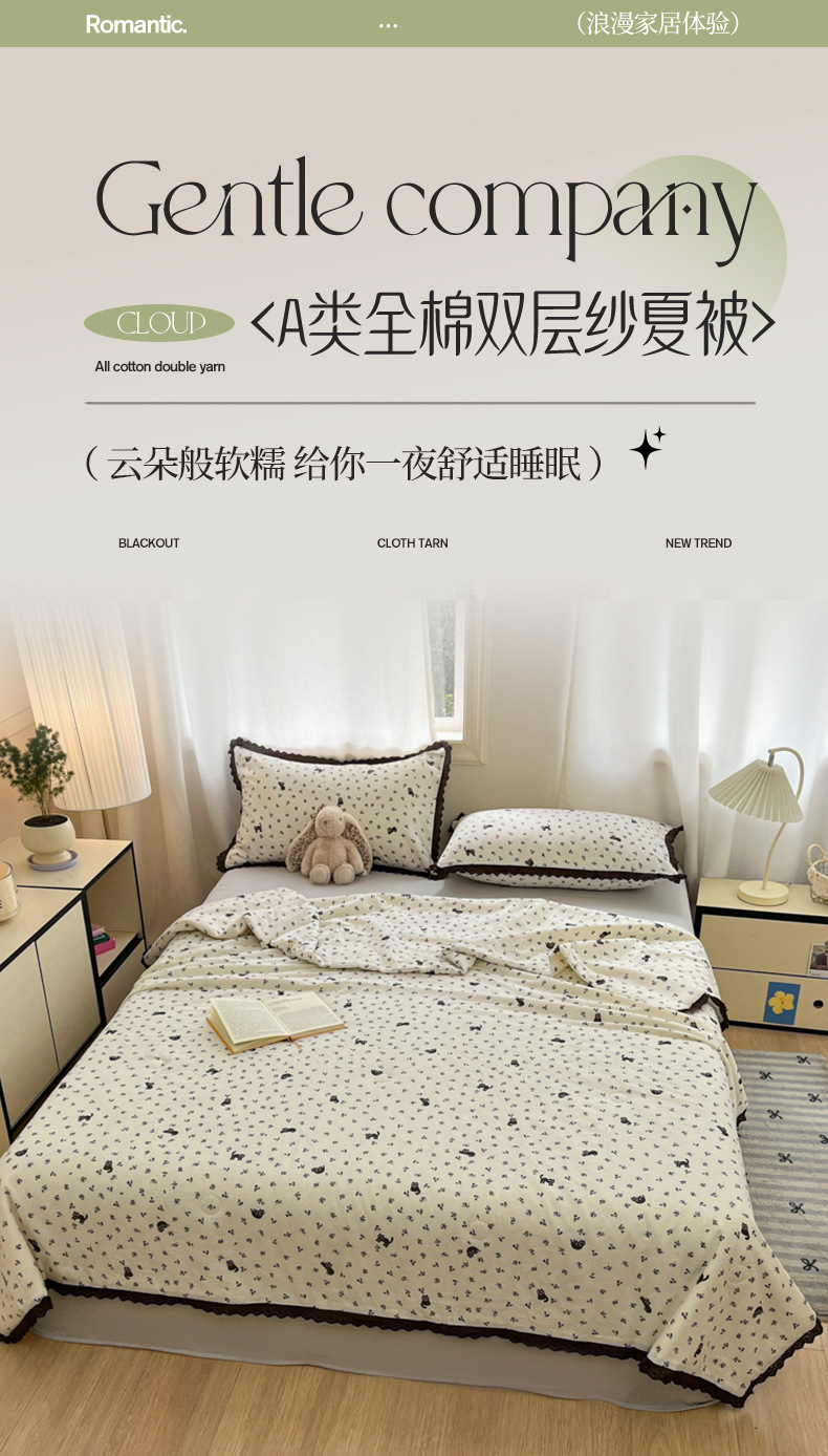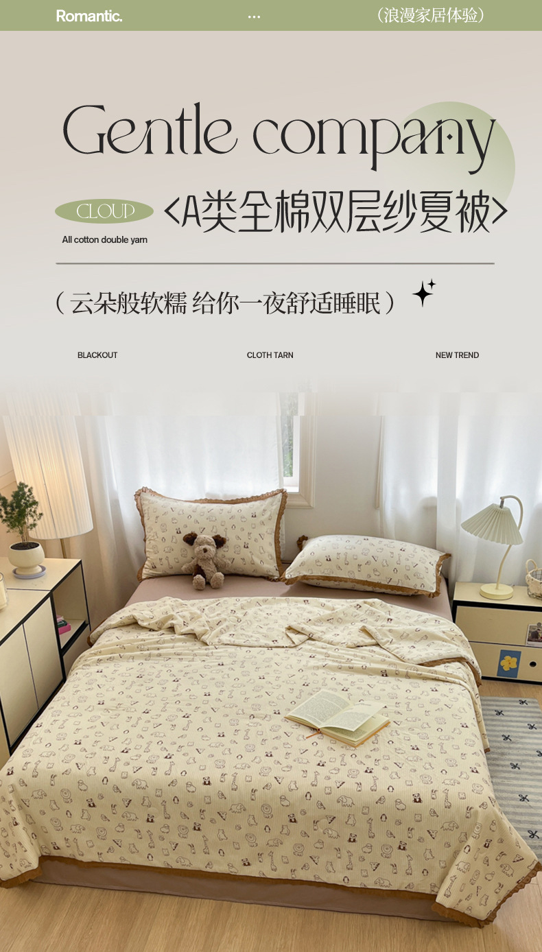 한국식 작은 레이스 코튼 더블 레이어 원사 여름 퀼트 클래스 A 모성 및 유아용 면사 여름 시원한 이불 어린이 콩 이불 에어컨 이불스토어 가기