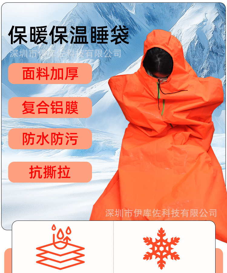 두꺼운 침낭, 야외 등산용, 방수, 방한, 보온, 저체온증 방지, 형광, 단열, 응급처치, 산악 캠핑, 휴대용스토어 가기