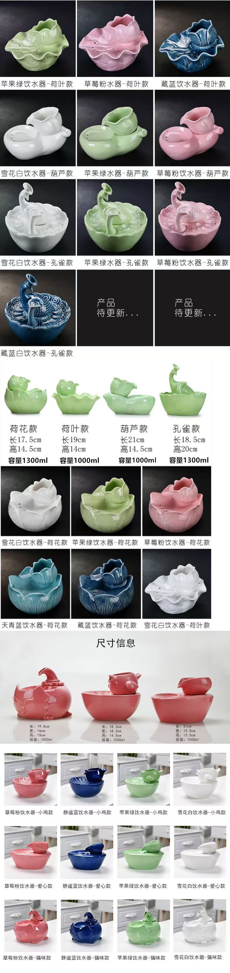 고양이 물 디스펜서 애완 동물 세라믹 자동 순환 물 공급 그릇 냄비 개 연결되지 않은 물 흐름 물 분수 물 음료