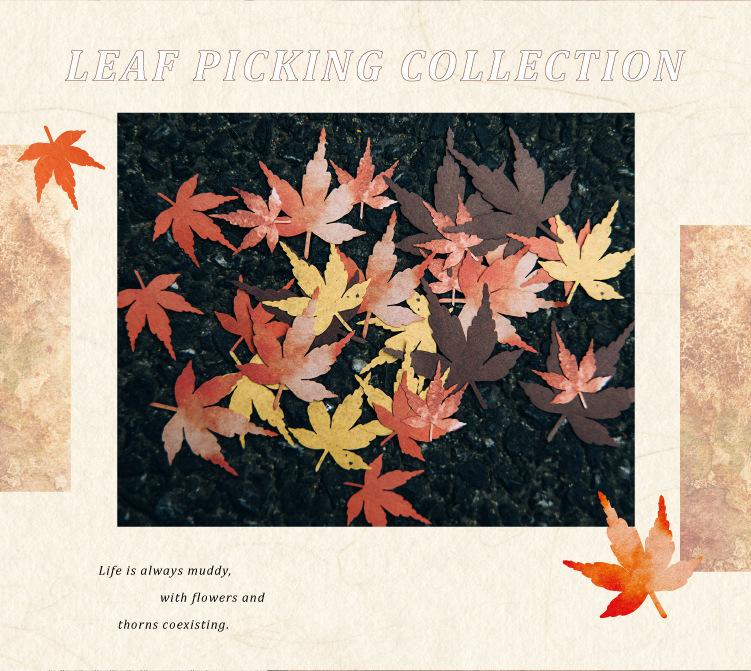 모 잉크 양각 소재 가방 잎 픽업 시리즈 복고풍 중공 시뮬레이션 잎 손 계정 장식 DIY 소재스토어 가기