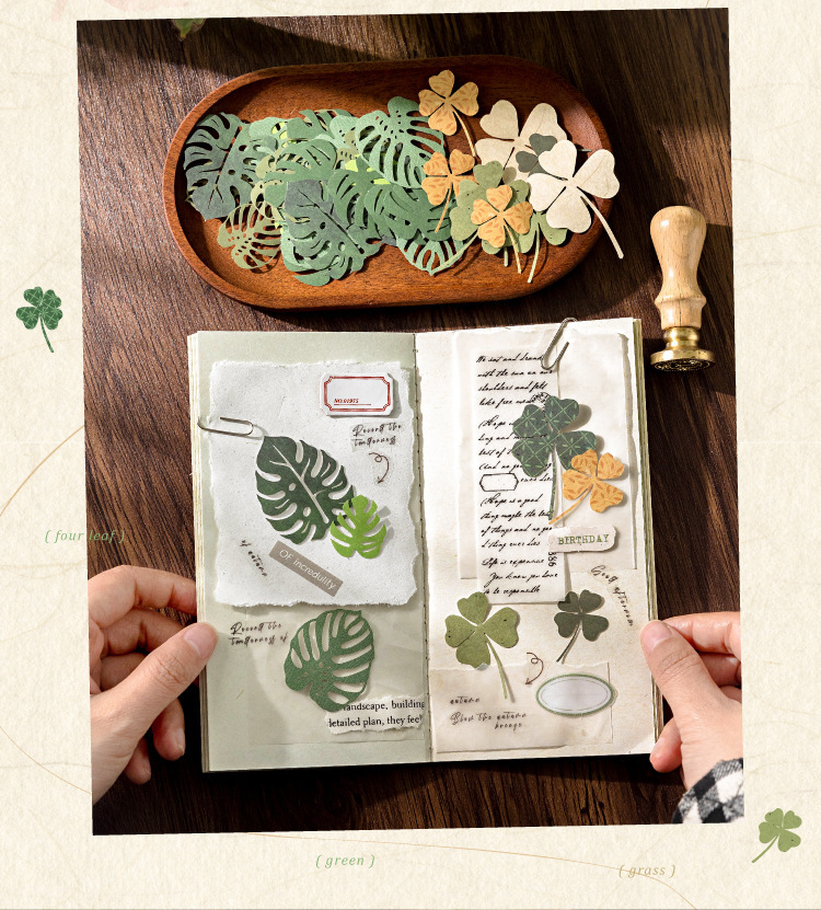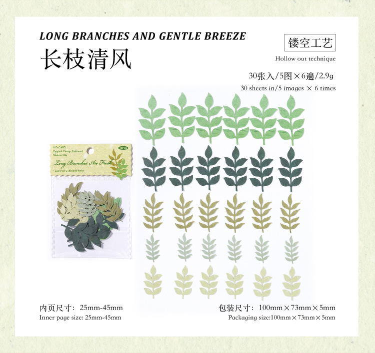 모 잉크 양각 소재 가방 잎 픽업 시리즈 복고풍 중공 시뮬레이션 잎 손 계정 장식 DIY 소재