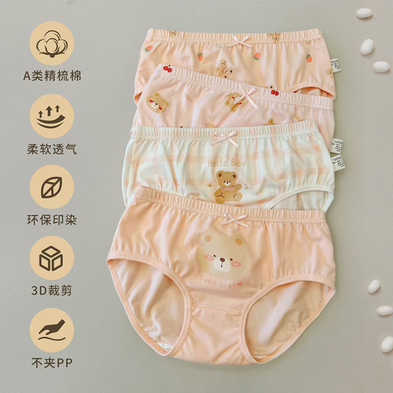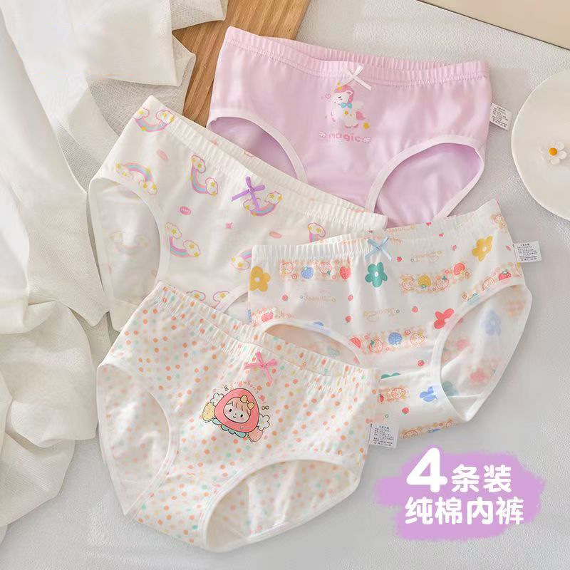 7A Hangbacteria 어린이 면화 속옷 4 팩 소년과 소녀 아기 복서 속옷 학생 통기성 여자 브리프스토어 가기