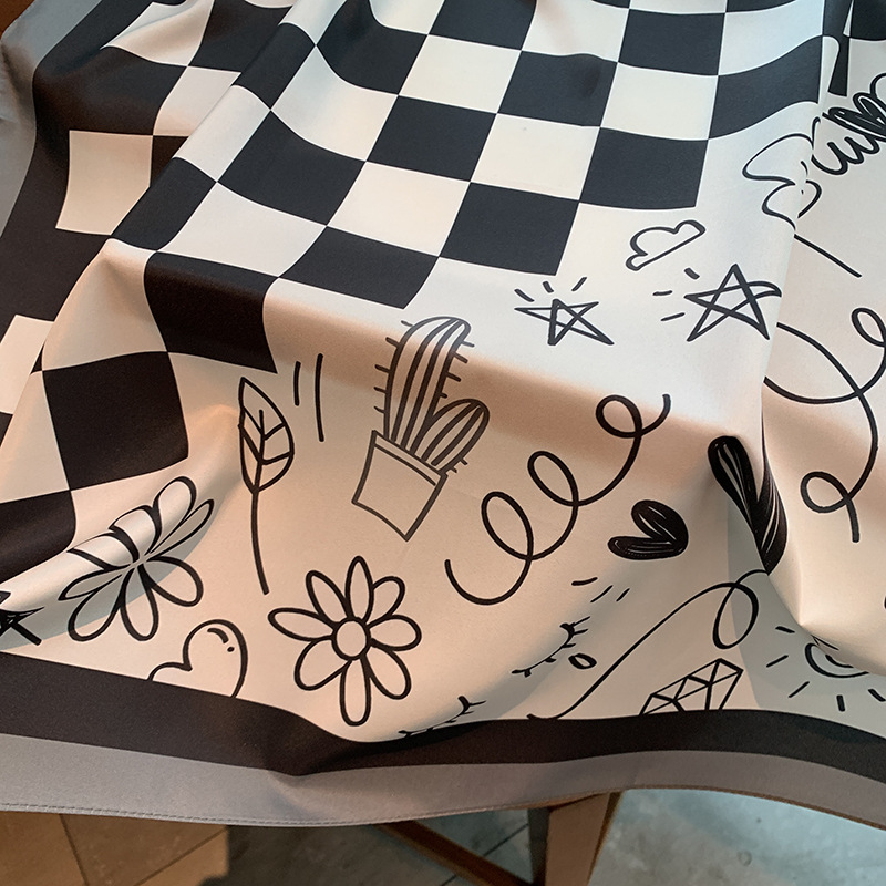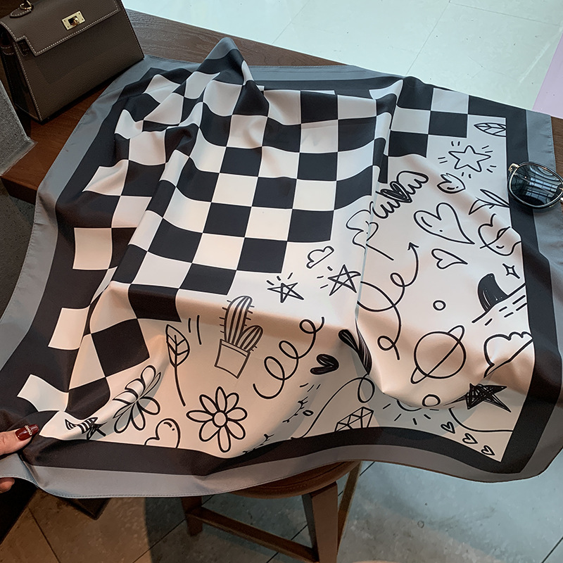 봄과 가을 새로운 한국 스타일 실크 작은 광장 여성 유행 서양식 목도리 장식 스카프 스카프 체커 보드스토어 가기