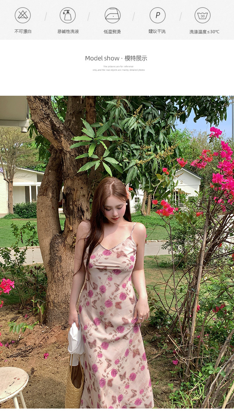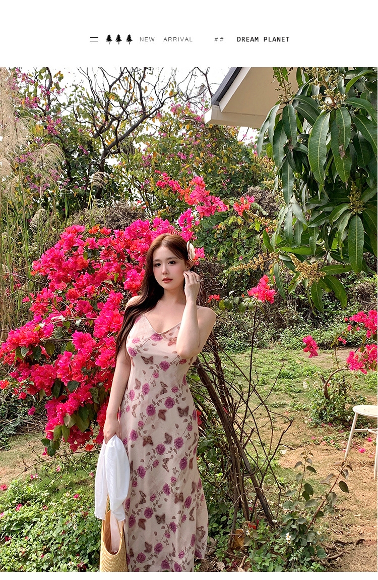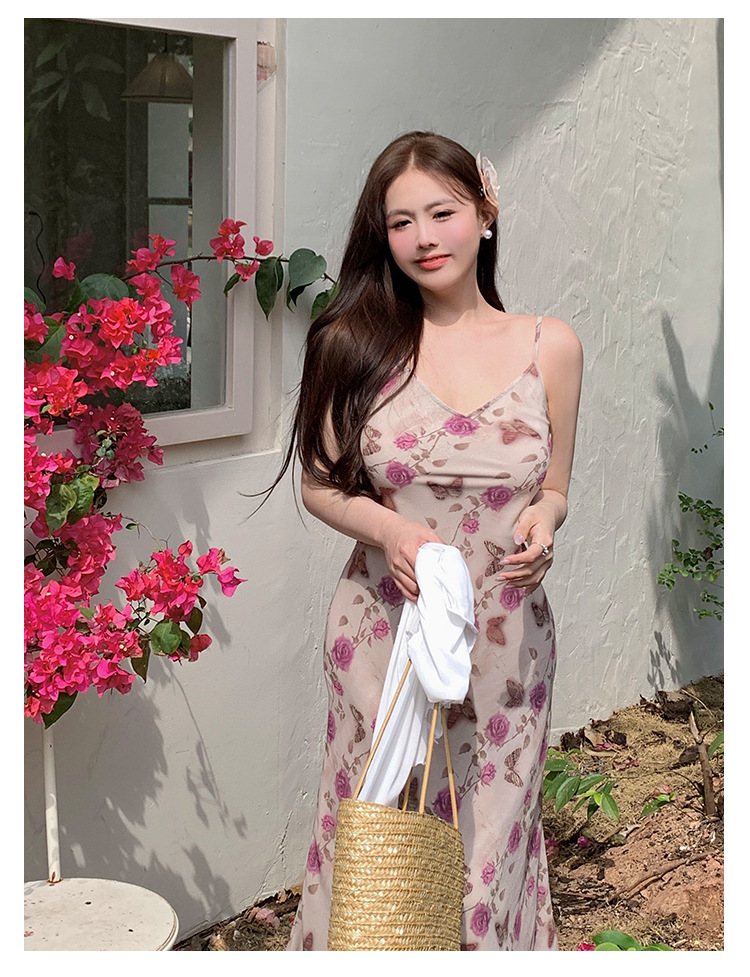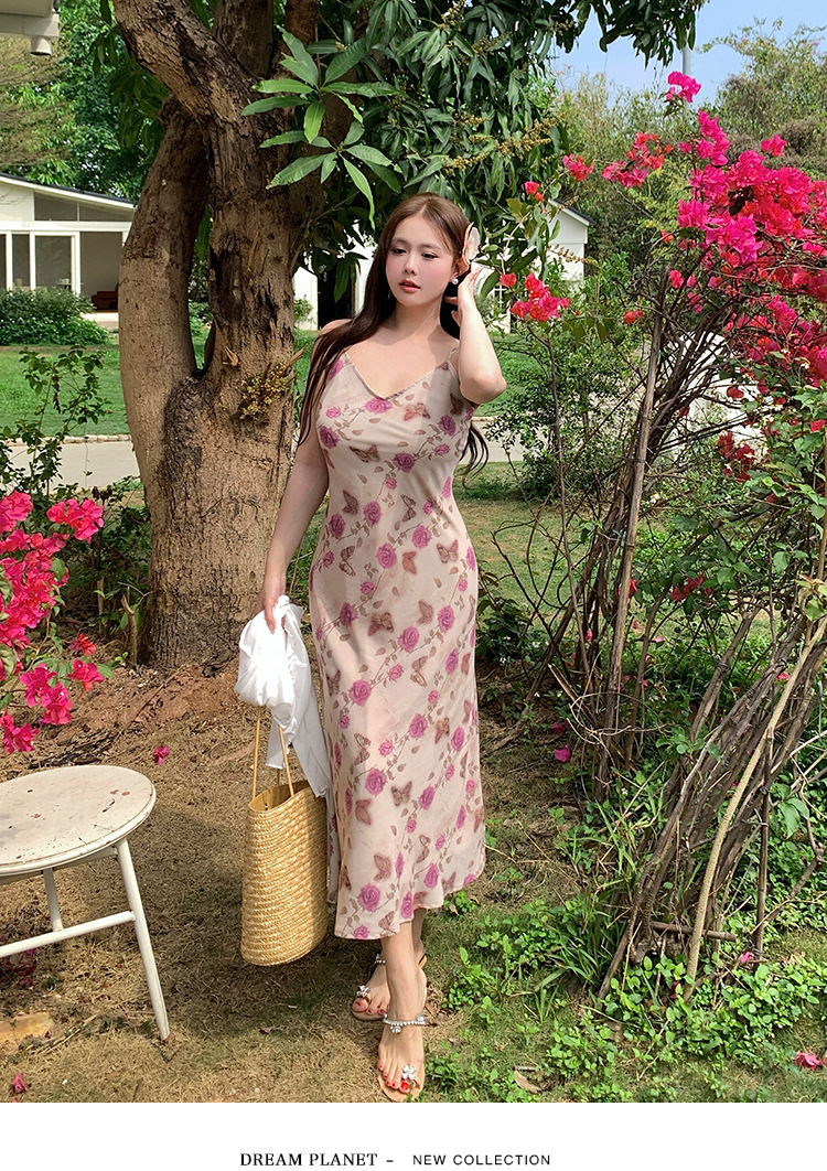 플러스 사이즈 여성 고급 프렌치 티 브레이크 꽃 슬링 원피스 블라인트 V 넥 슬림 피쉬 테일 스커트 2035스토어 가기