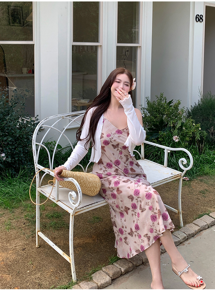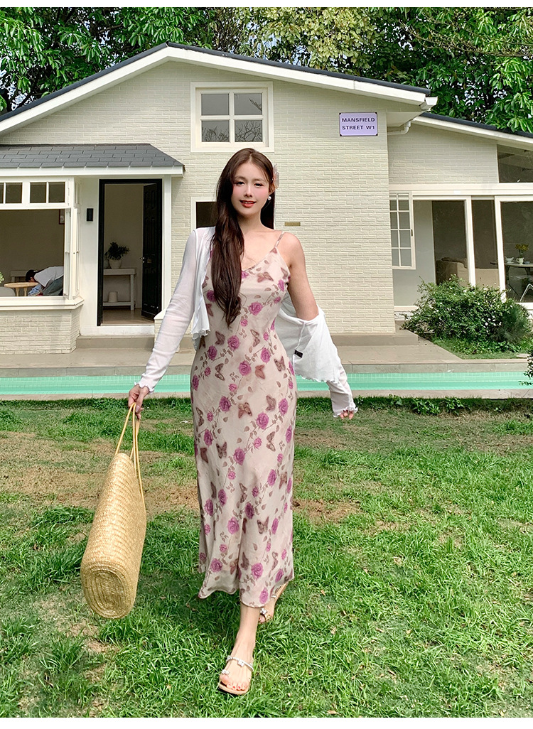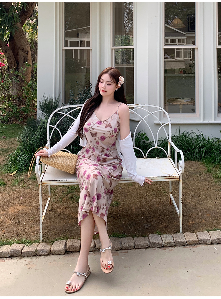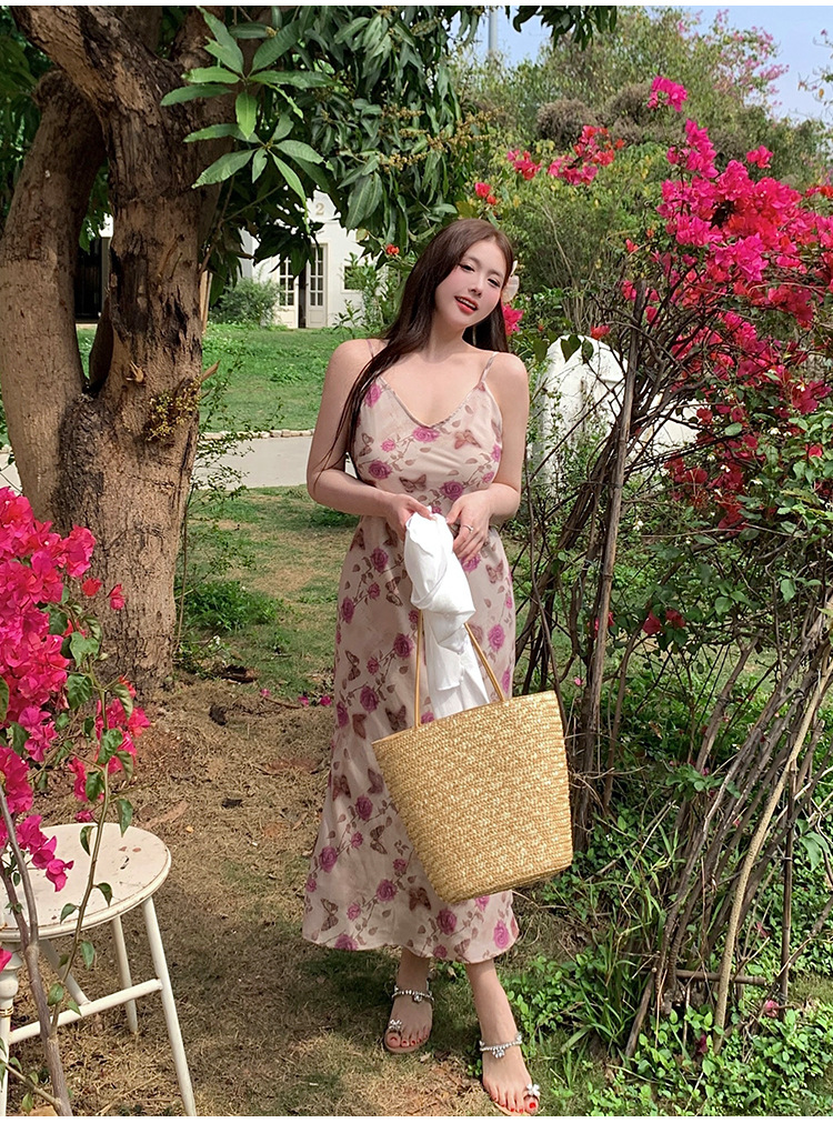 플러스 사이즈 여성 고급 프렌치 티 브레이크 꽃 슬링 원피스 블라인트 V 넥 슬림 피쉬 테일 스커트 2035스토어 가기