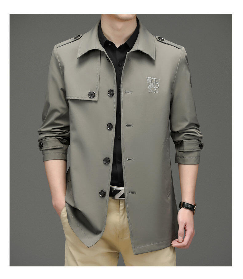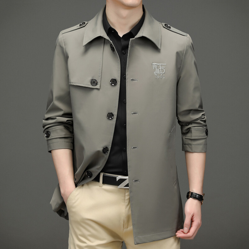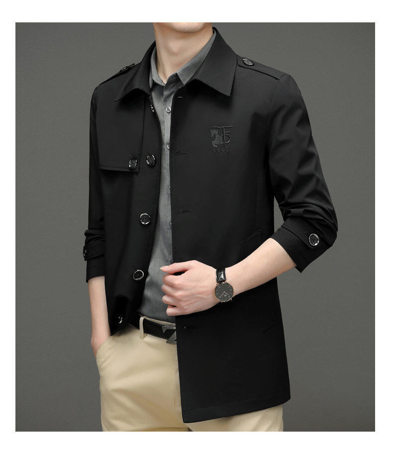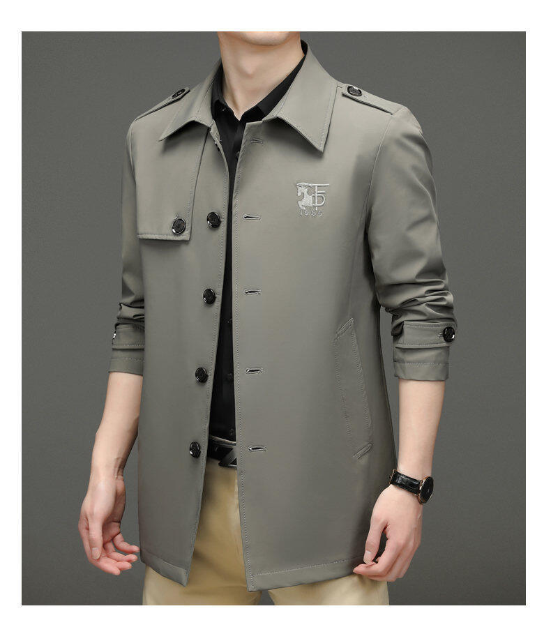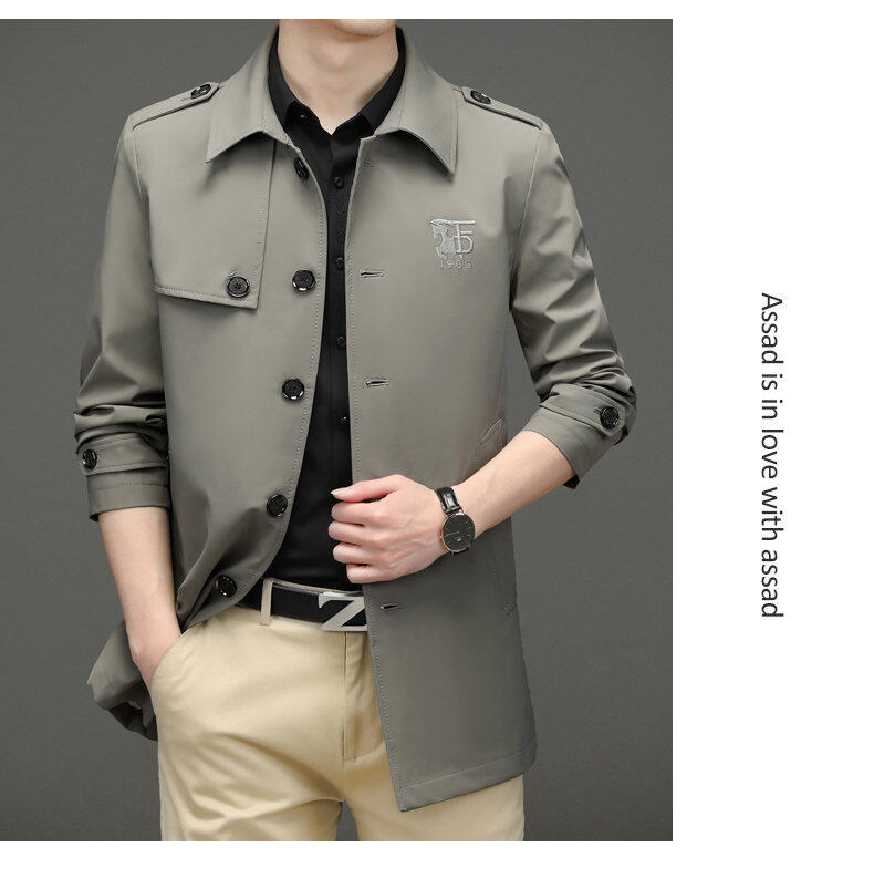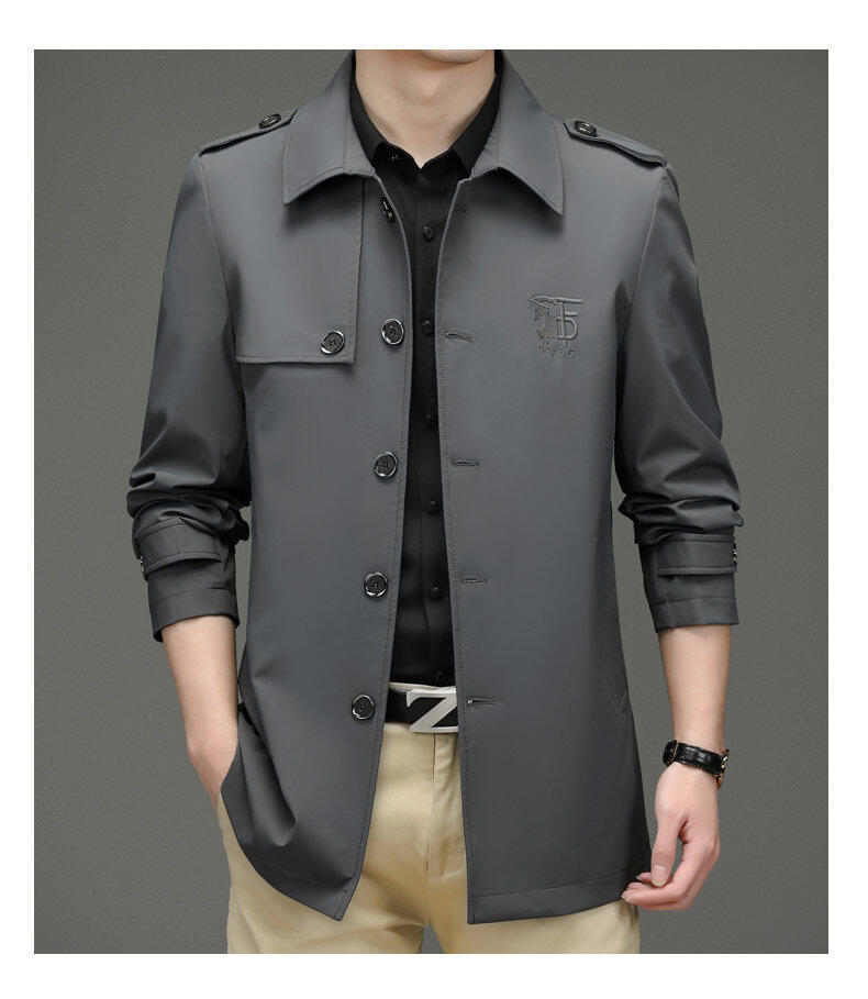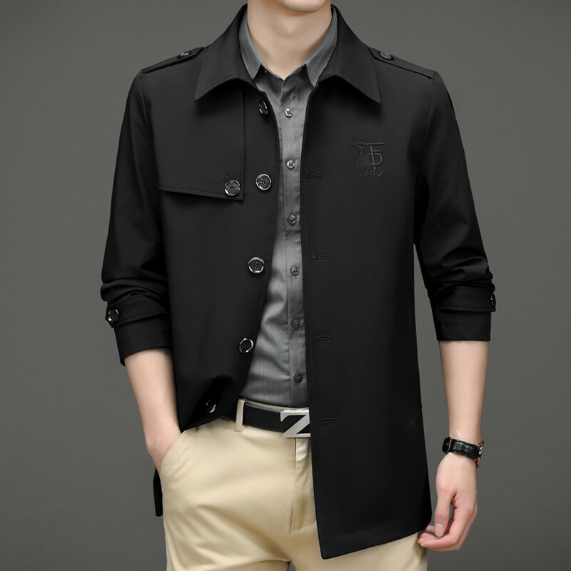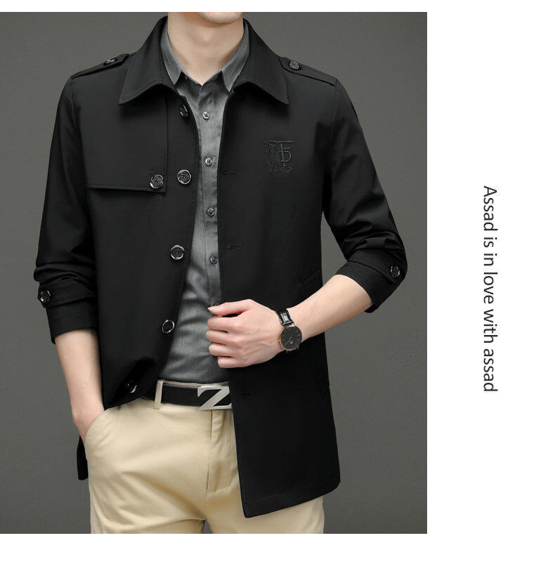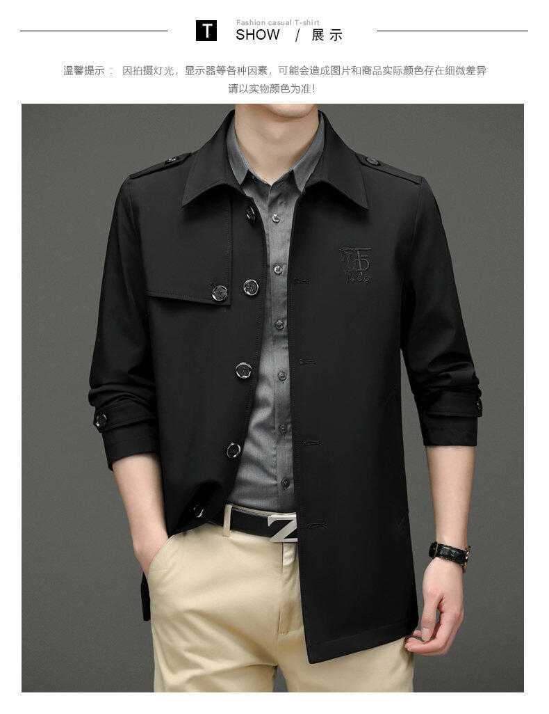 25 명의 새로운 남성 윈드 브레이커 비즈니스 캐주얼 중년 단순 조커 자수 세트 칼라스토어 가기