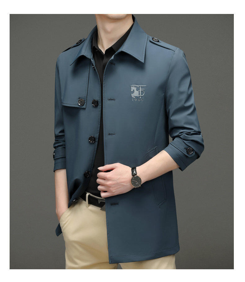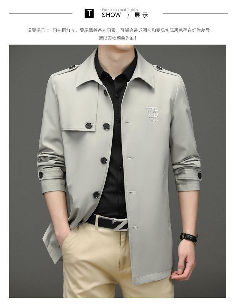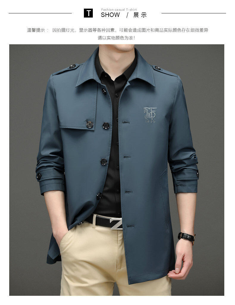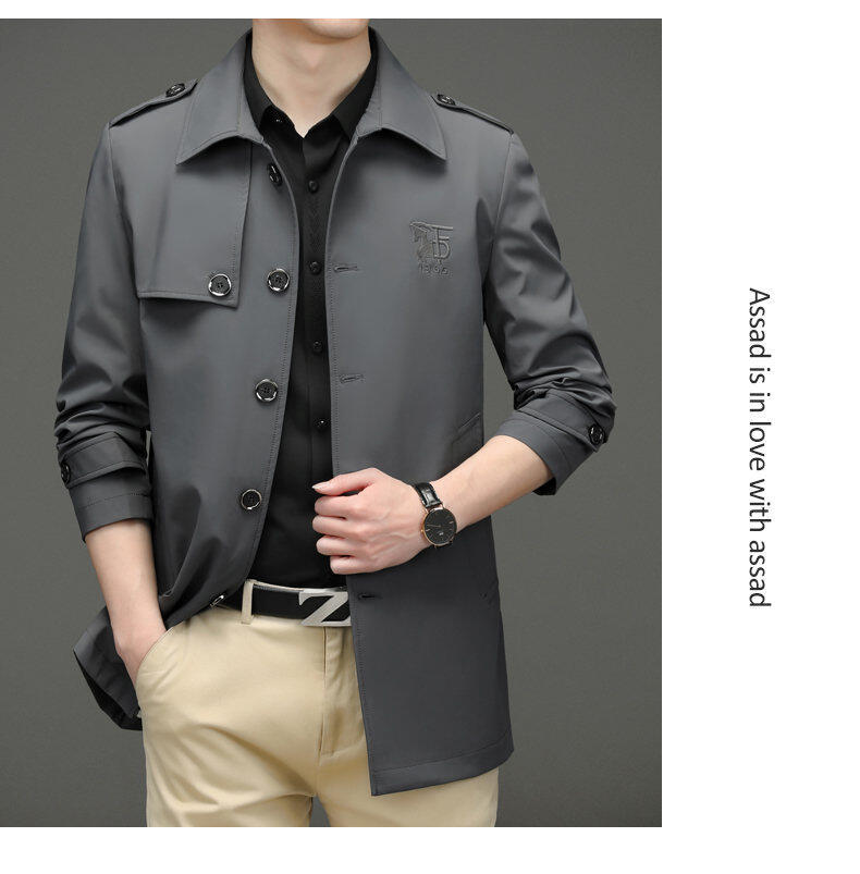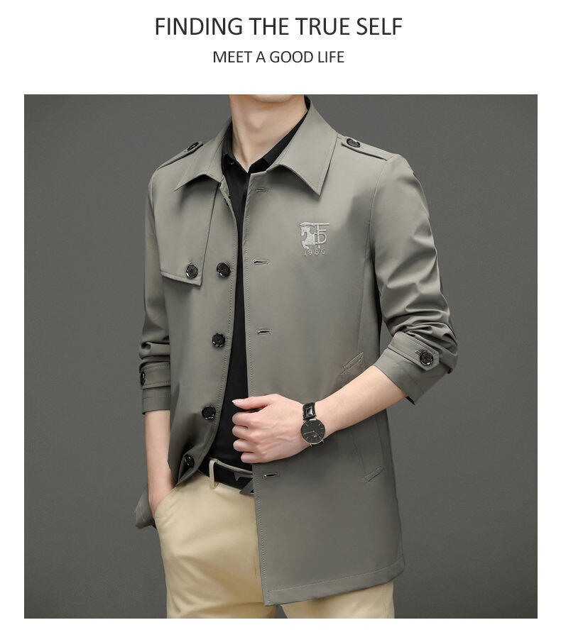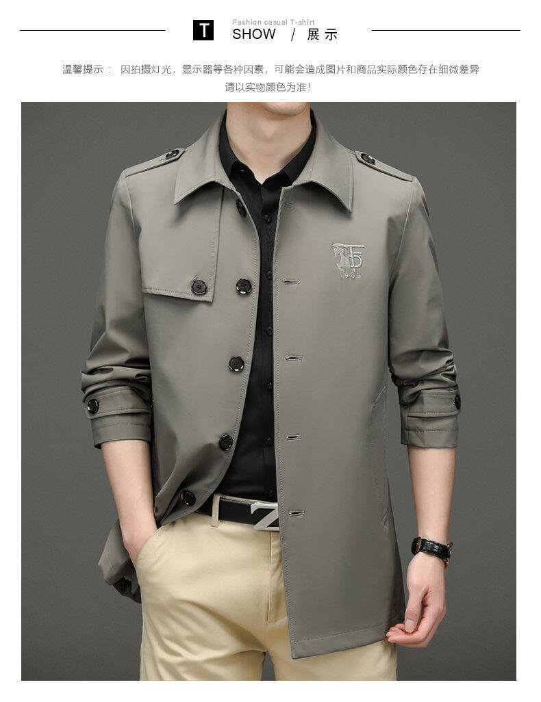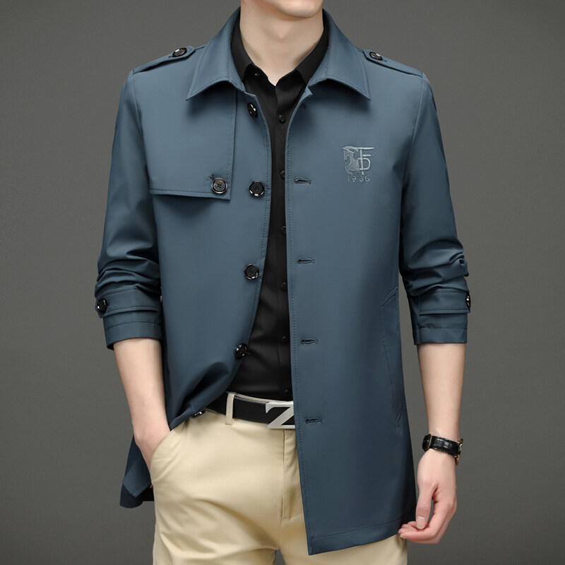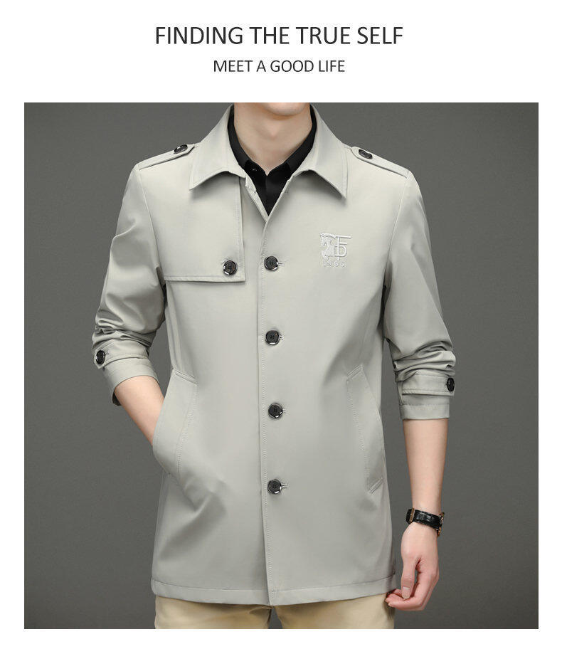 25 명의 새로운 남성 윈드 브레이커 비즈니스 캐주얼 중년 단순 조커 자수 세트 칼라스토어 가기