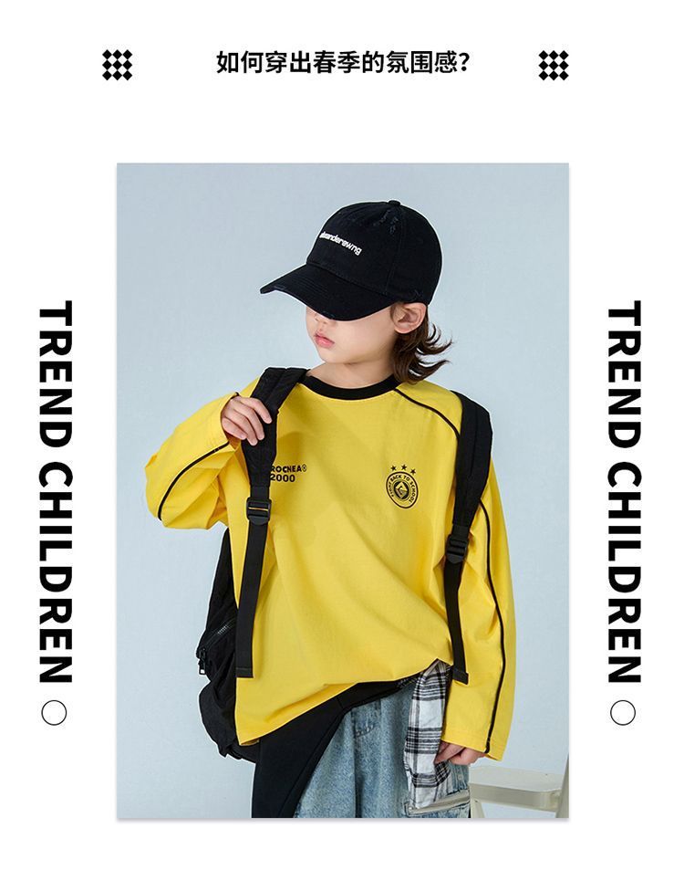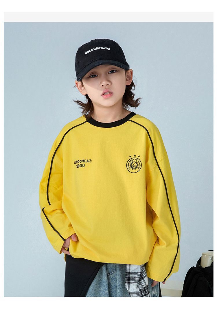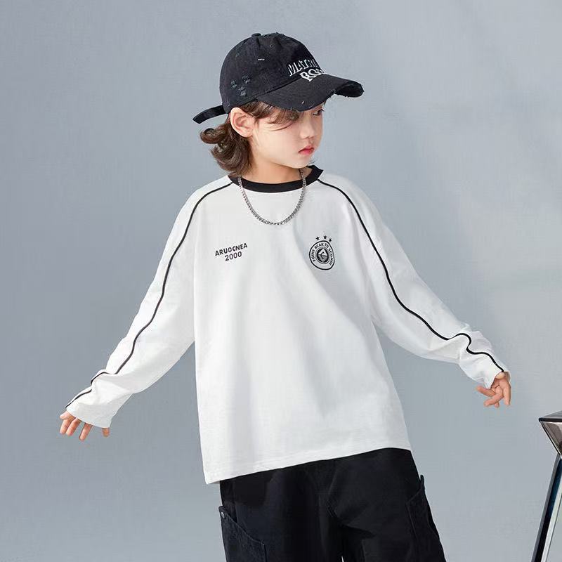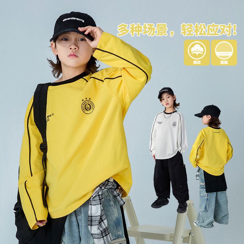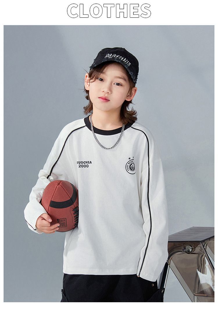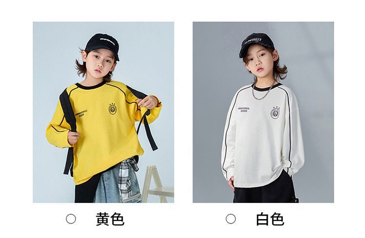 남아용 긴팔 티셔츠 봄, 가을 신상 면 아동용 중대형 아동용 하의 상의, 패셔너블하고 활용도가 높은 아우터웨어