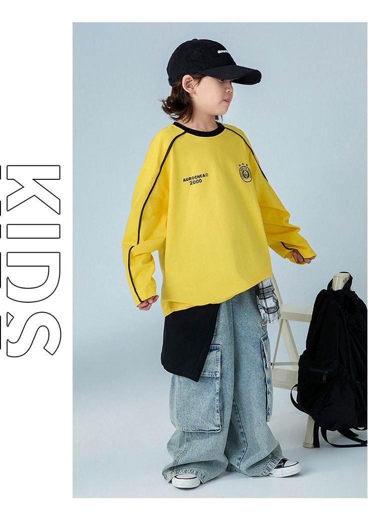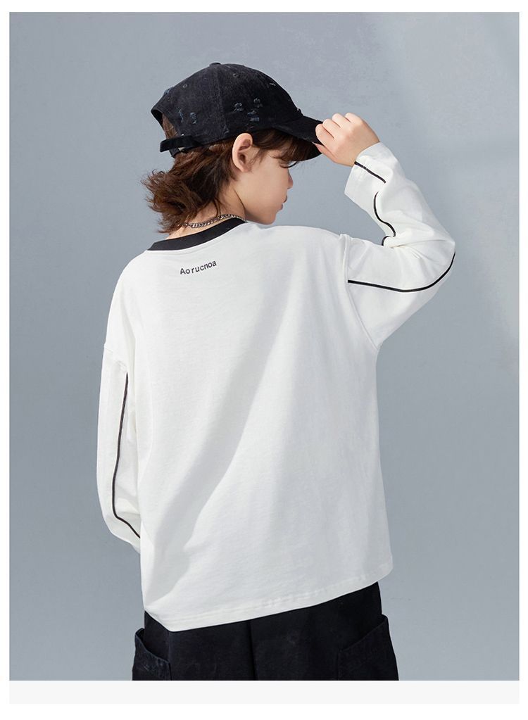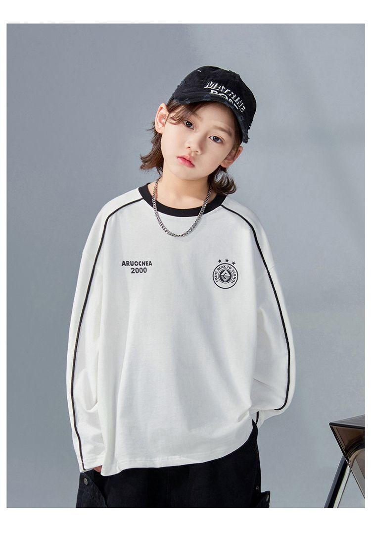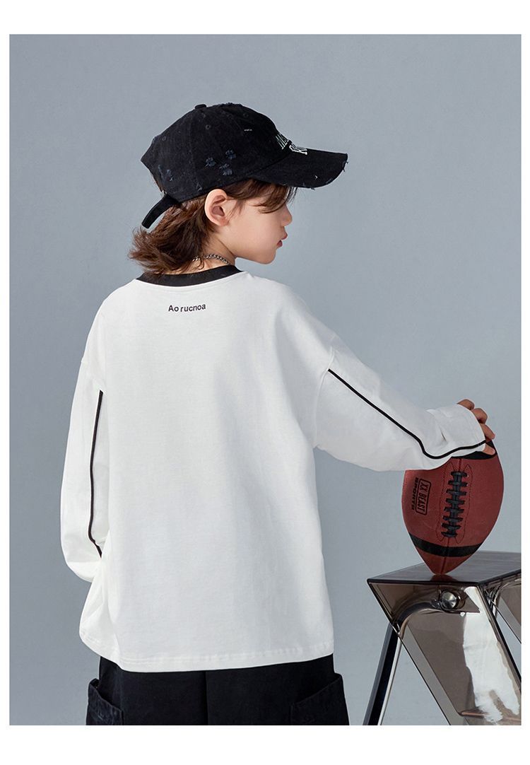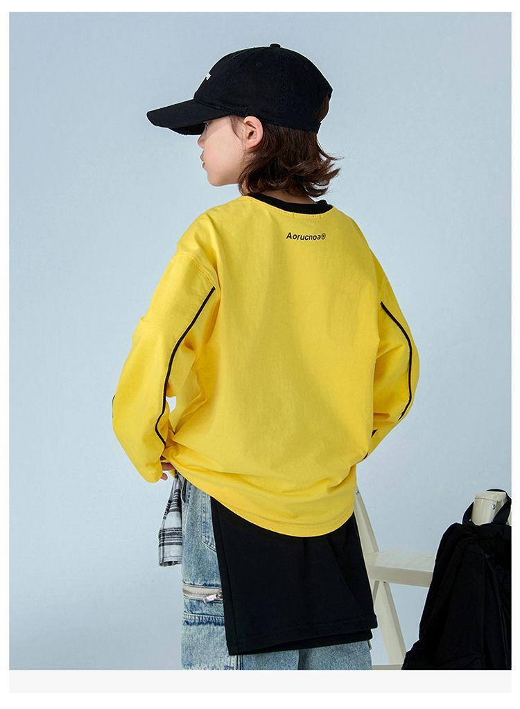 남아용 긴팔 티셔츠 봄, 가을 신상 면 아동용 중대형 아동용 하의 상의, 패셔너블하고 활용도가 높은 아우터웨어