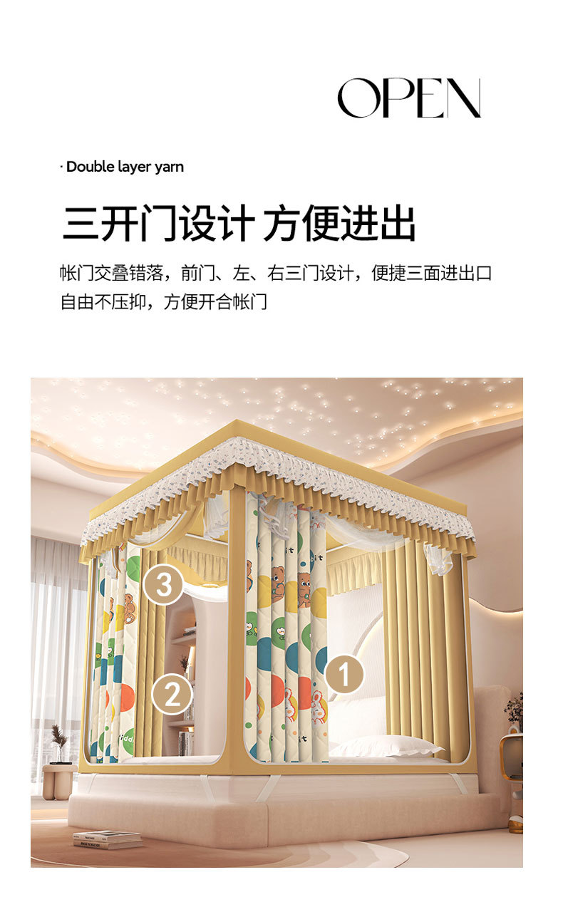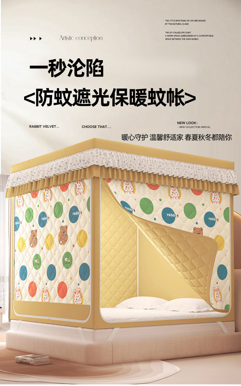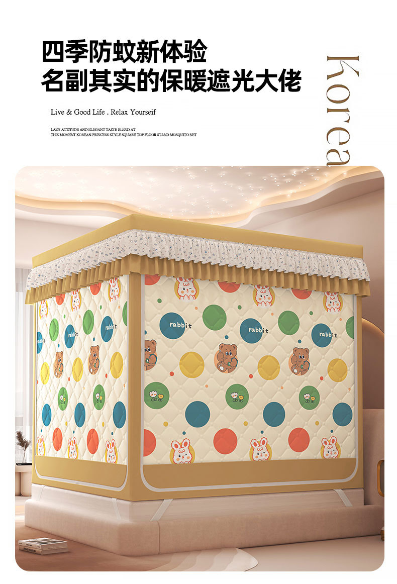 2025 새로운 클래스 A 인쇄 된 퀼트 그늘 따뜻한 좌석 침대 모기장 사계절 안티-모기 전체 음영 3 도어 모기