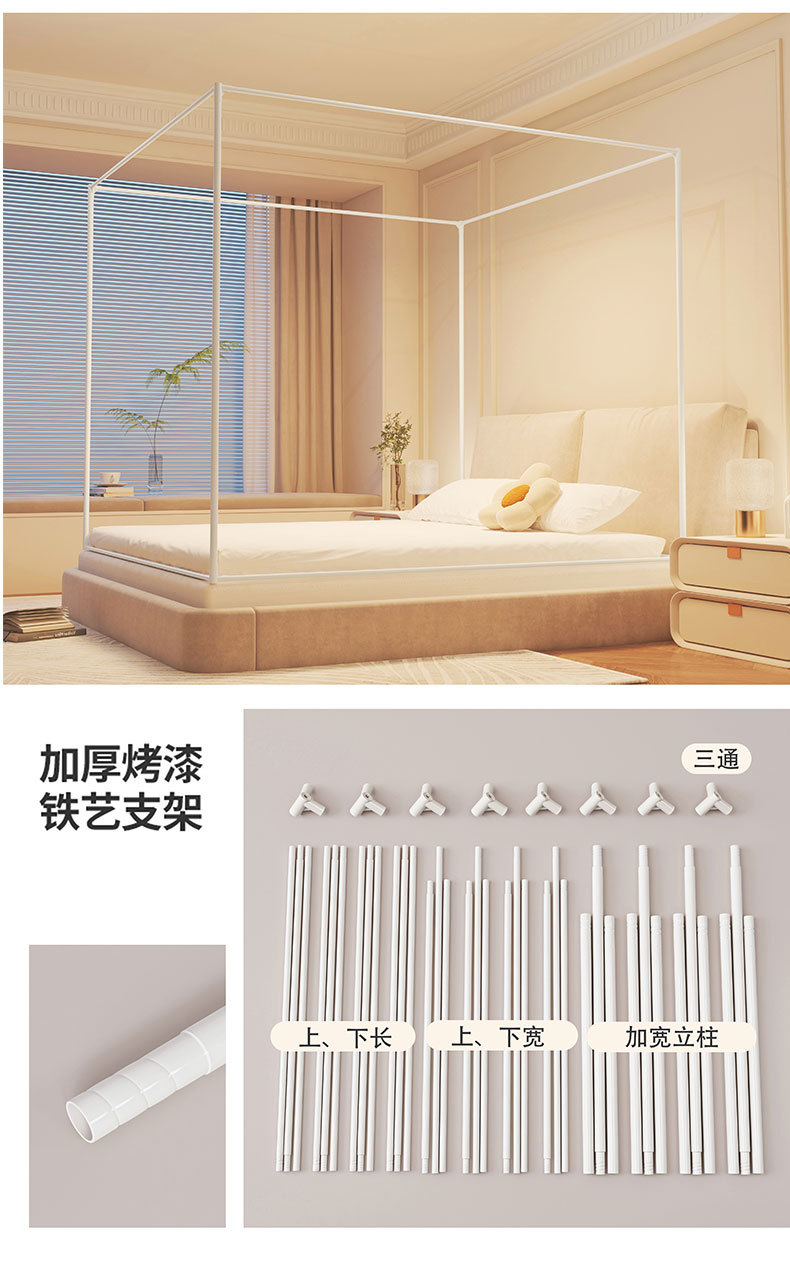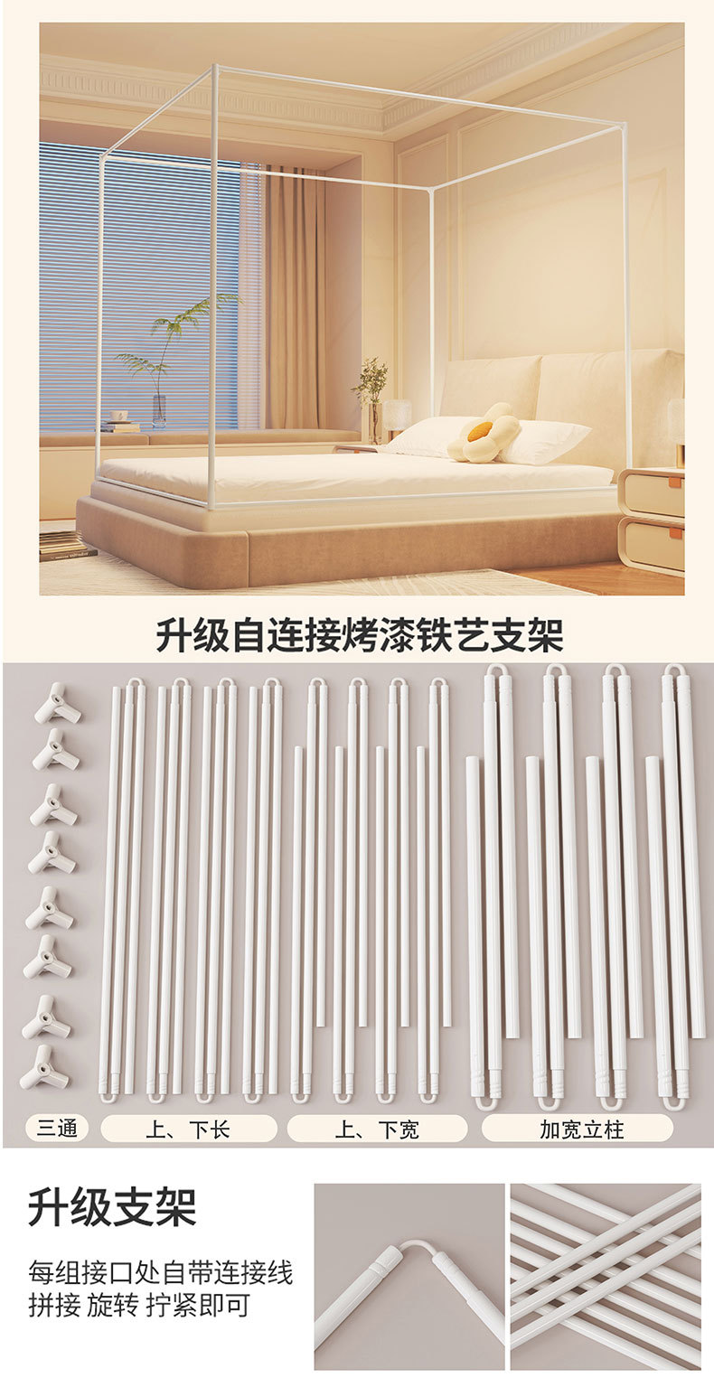 • 180x200x170(자체 연결 페인트 브래킷) 4면 열 커튼이 있는 퀼팅 침대 커튼