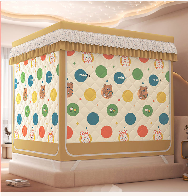 • 150x200x170(두꺼운 페인트 브래킷) 4면 따뜻한 커튼이 있는 퀼팅 침대 커튼