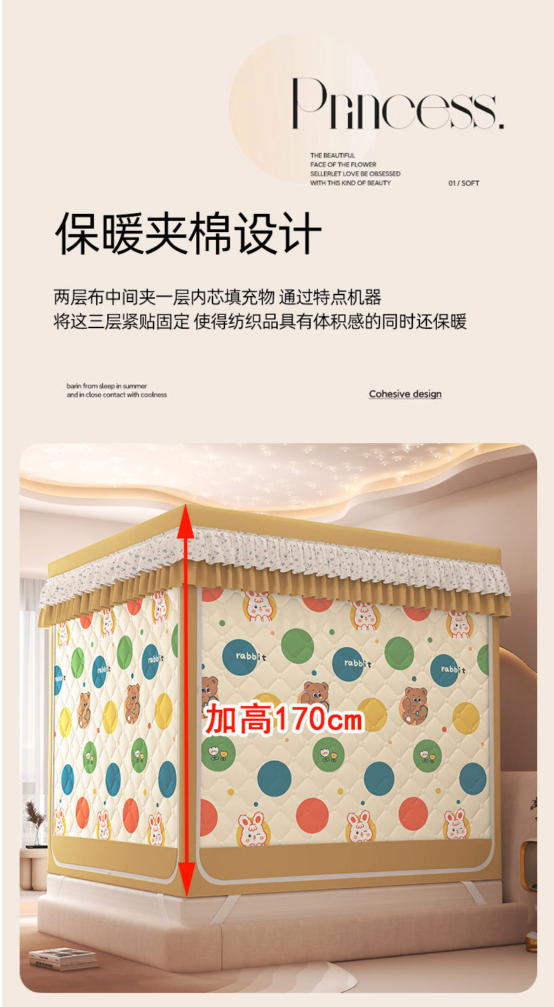 • 180x200x170(두꺼운 페인트 브래킷) 4면 따뜻한 커튼이 있는 퀼팅 침대 커튼