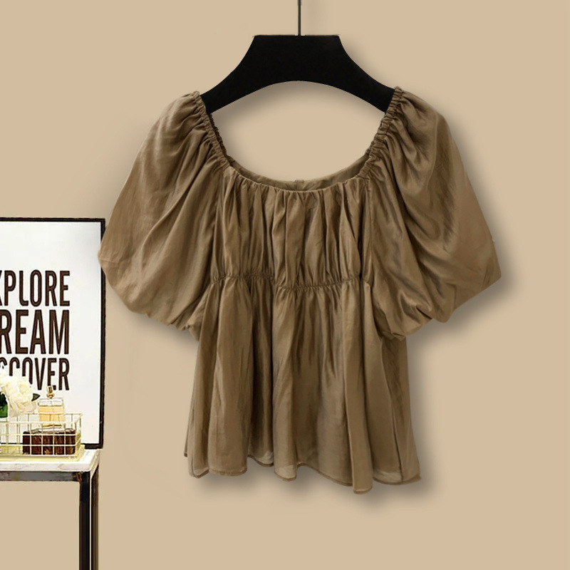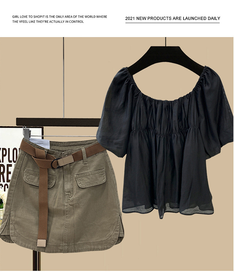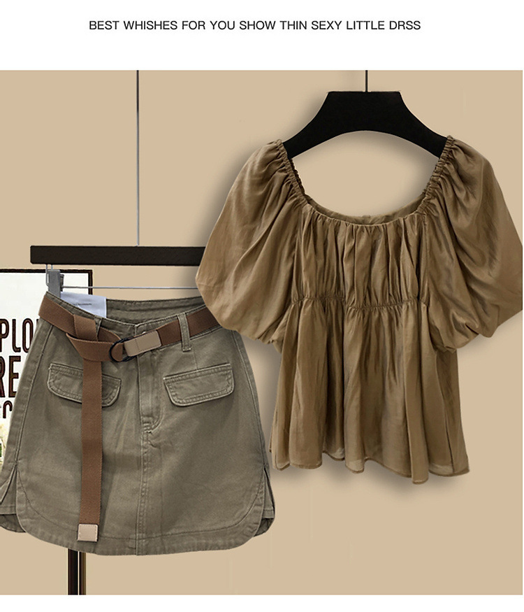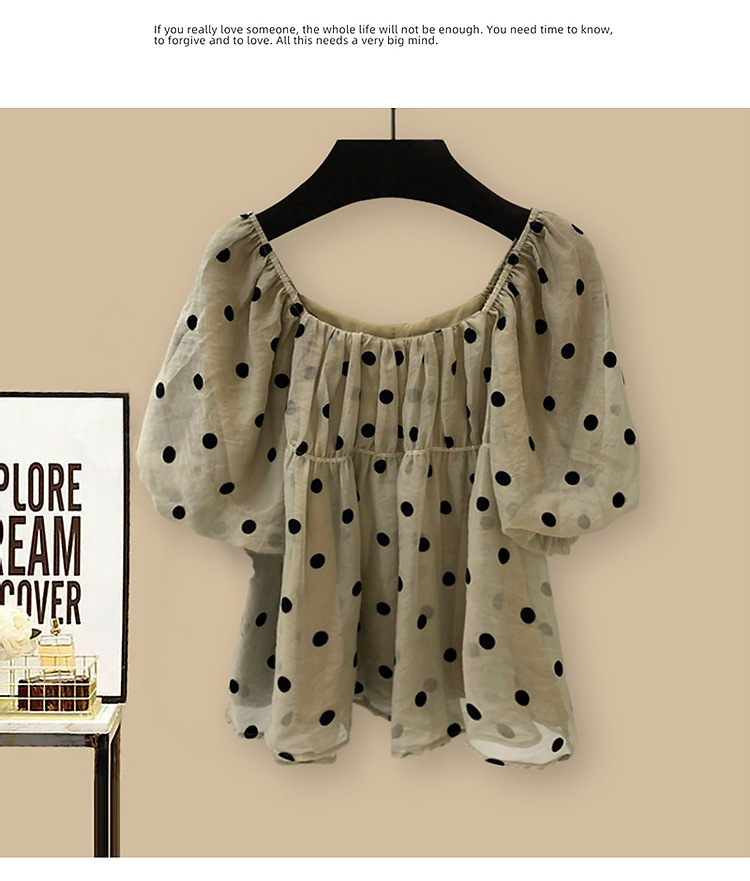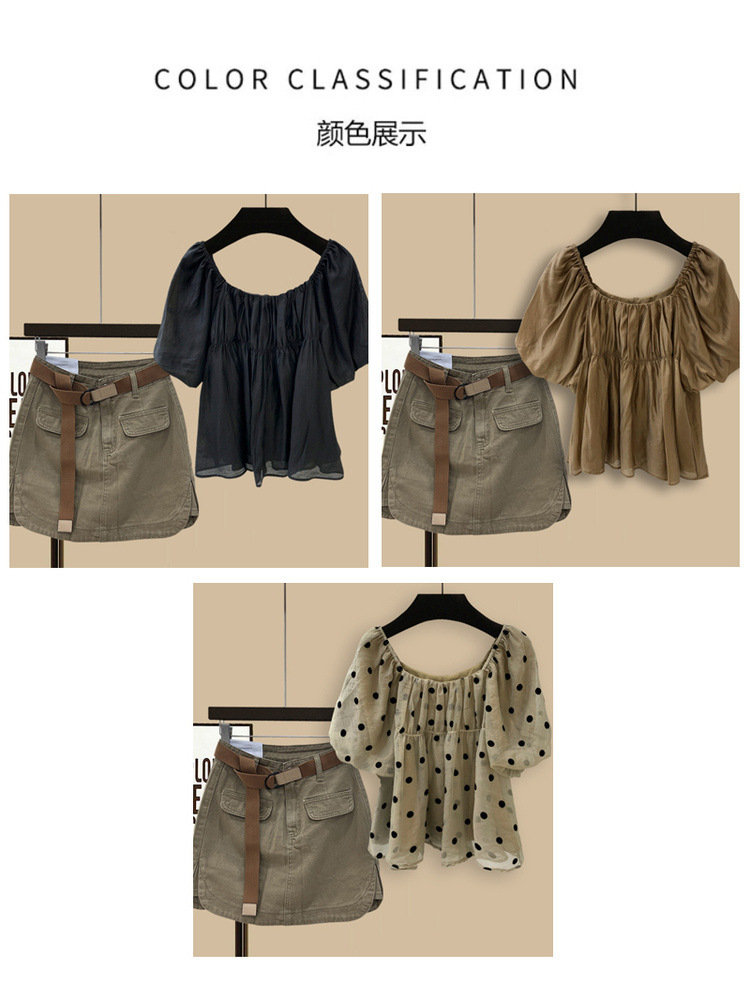 2025 년 여름 새 도착 한 캐릭터 칼라 폴로 도트 셔츠 여자 쉬폰 반팔 유행 올 매치 카키 원피스 투피스 세트스토어 가기