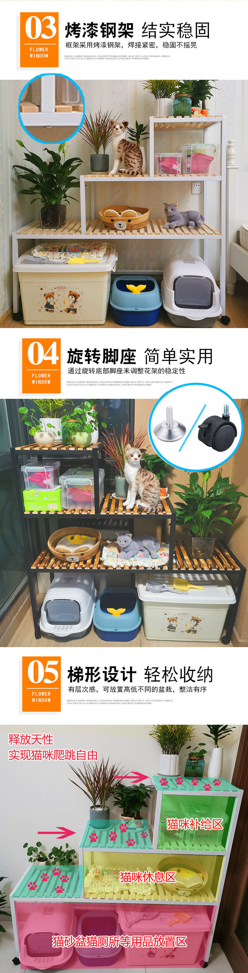 고양이 등반 랙 고양이 쓰레기 분지 저장 랙 다층 애완 동물 용품 보관 발코니 고양이 사다리 고양이 둥지 물고기