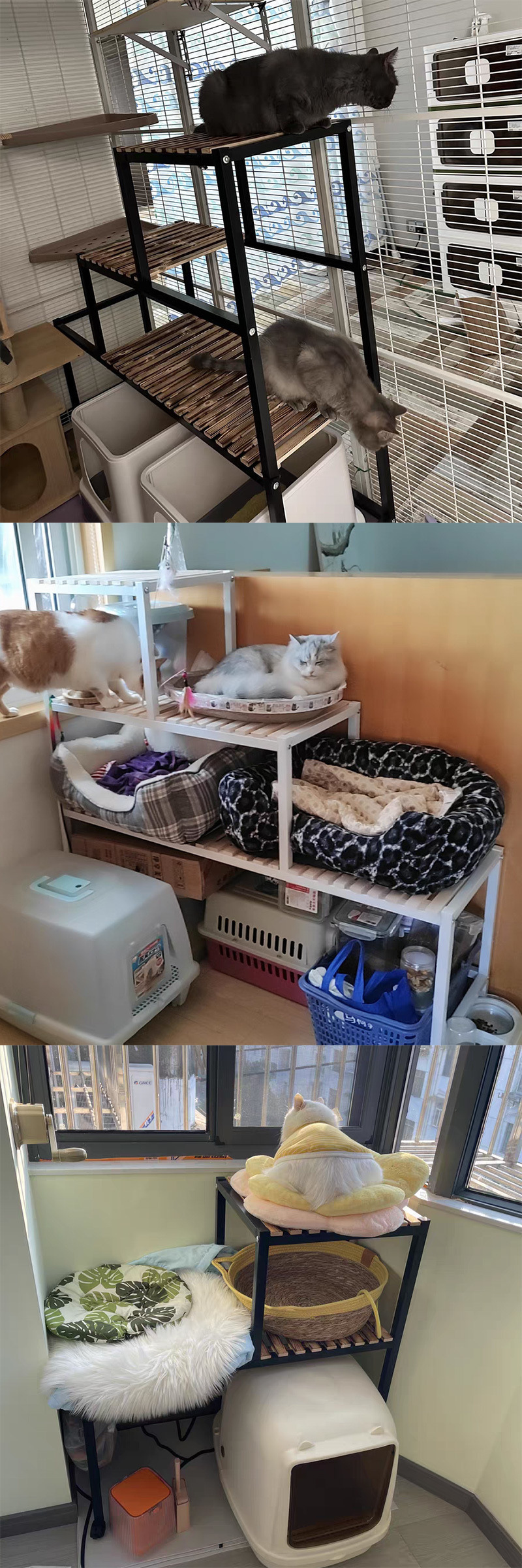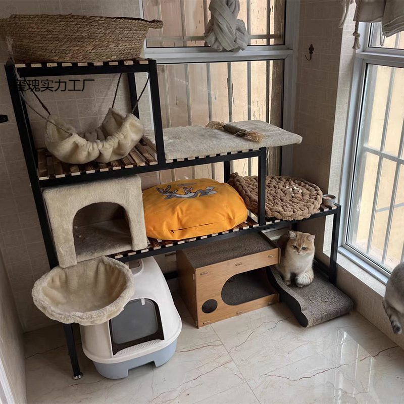 고양이 등반 랙 고양이 쓰레기 분지 저장 랙 다층 애완 동물 용품 보관 발코니 고양이 사다리 고양이 둥지 물고기스토어 가기