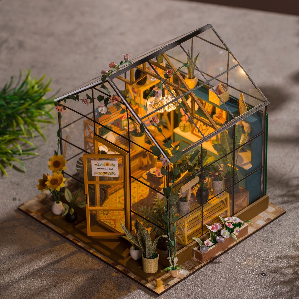 [무료 배송] diy 캐빈 꽃집 수제 집 조립 입체 퍼즐 소녀를위한 미니어처 모델 장난감