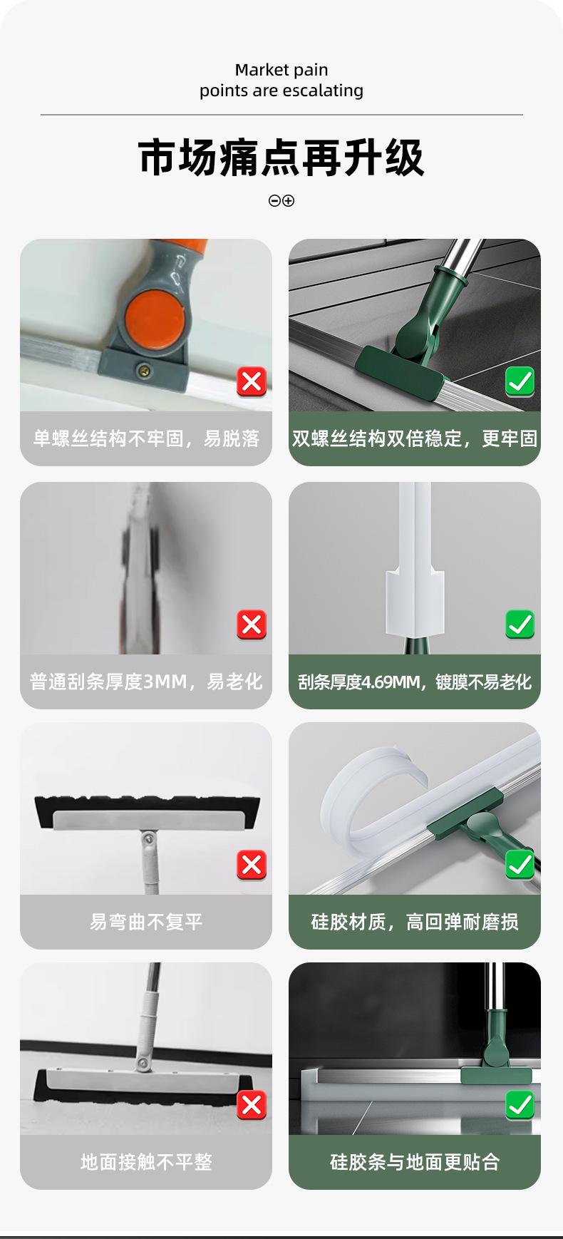 가정용 매직 빗자루 주방 욕실 실리콘 바닥 스크레이퍼 개폐식 바닥 와이퍼 바닥 타일 걸레