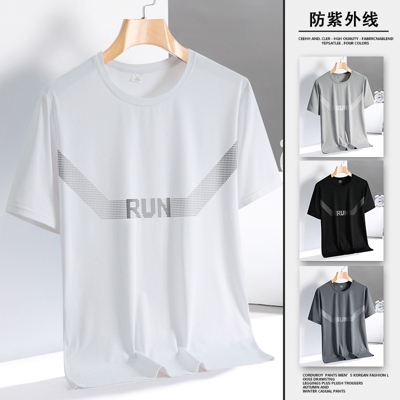 2025 국경 자외선 차단제 티셔츠 남성 여름 달리기 스포츠 통기성 아이스 실크 퀵 건조 짧은 소매 주름 방지 도매스토어 가기