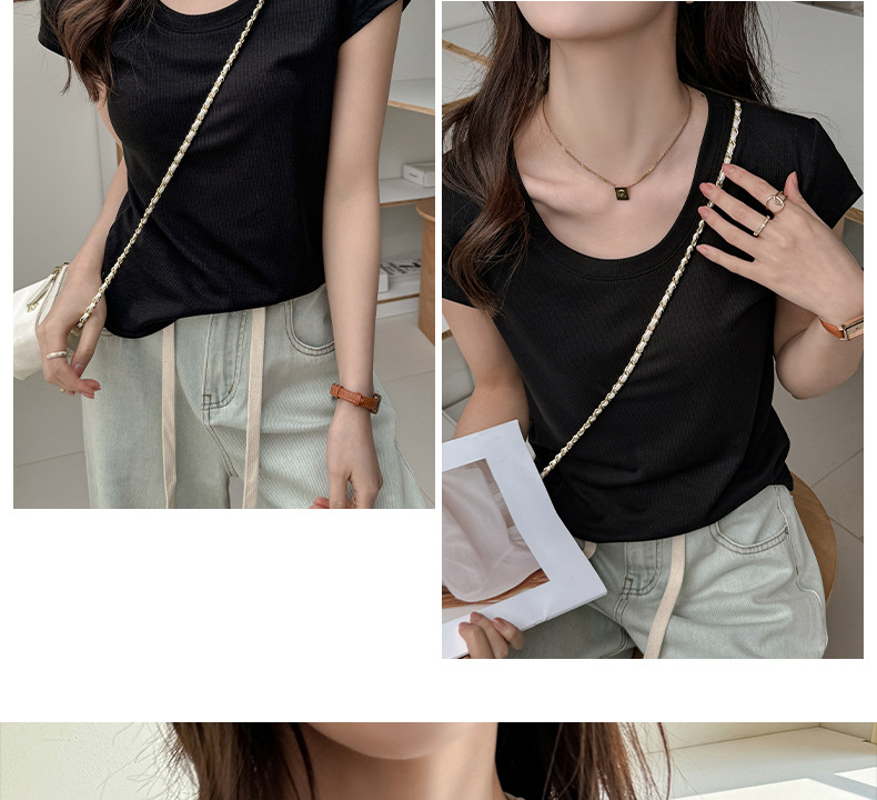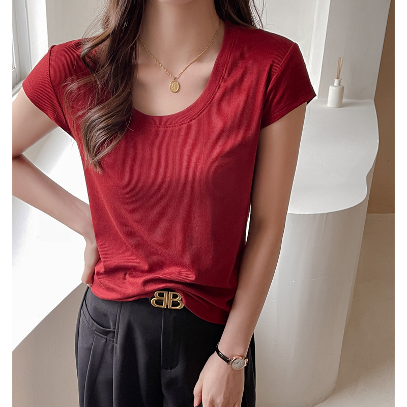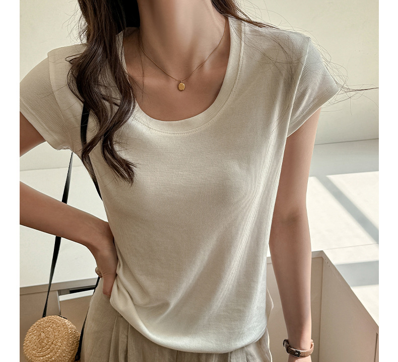 Lyocell Tencel 넓은 느슨한 어깨 반팔 티셔츠 여성용 T-하이 엔드 스몰 플라이 슬리브 여름 슬림 모양의 고기로 덮인 탑