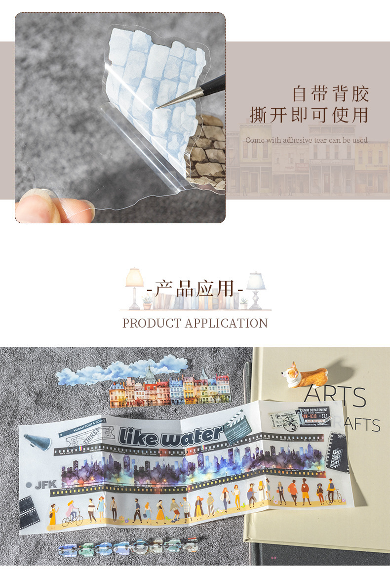 케첩 소녀 스티커 가방 생활 복도 시리즈 라이트 레트로 빌딩 풍경 손 계정 기본 콜라주 자료스토어 가기