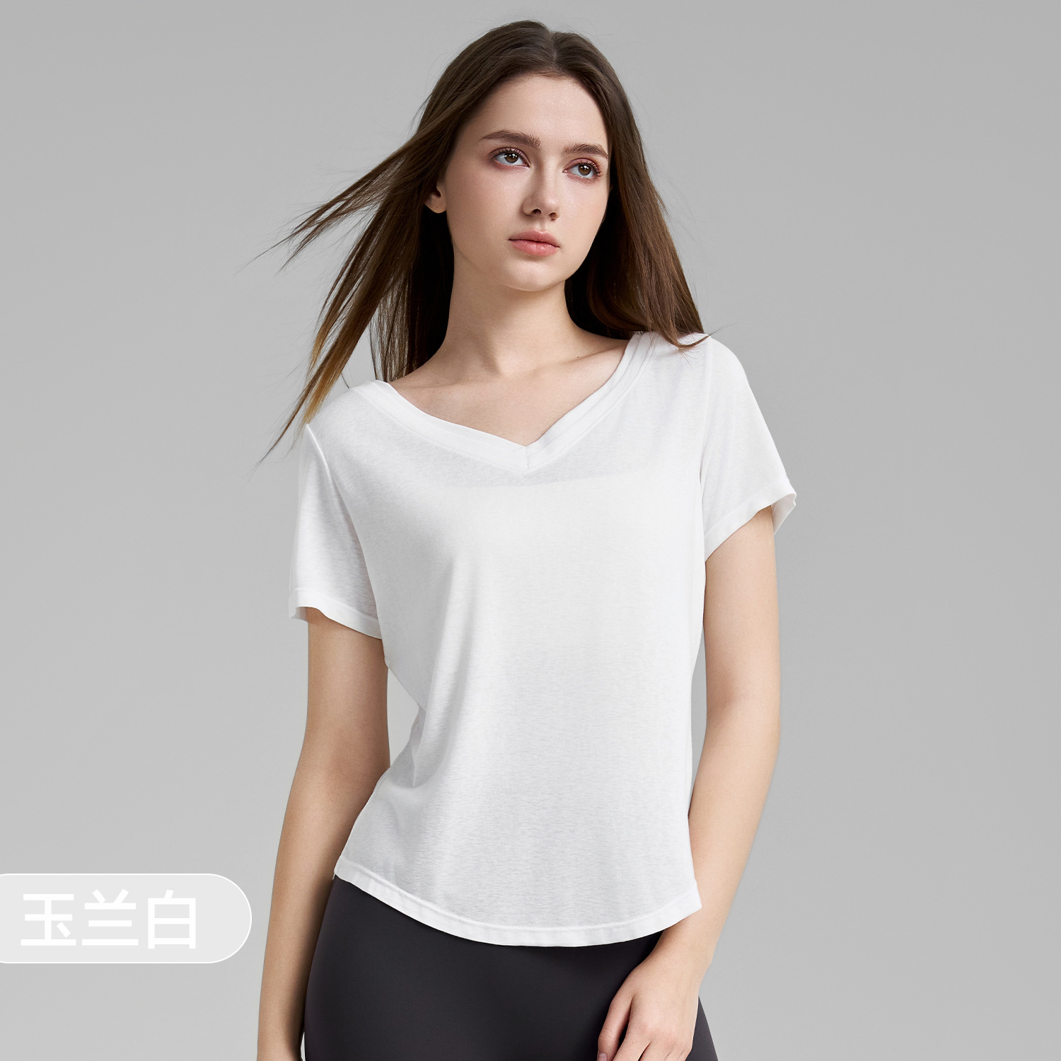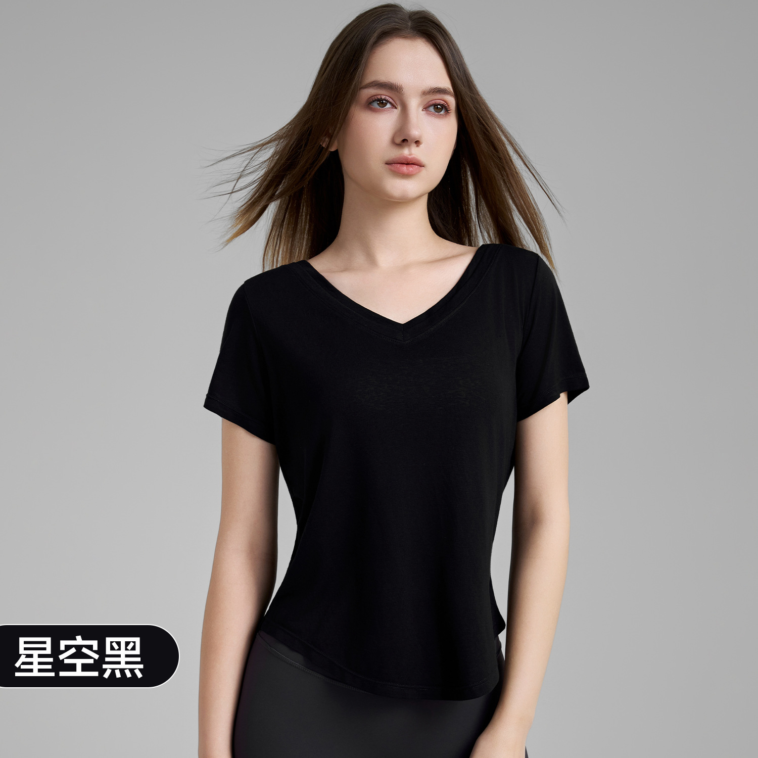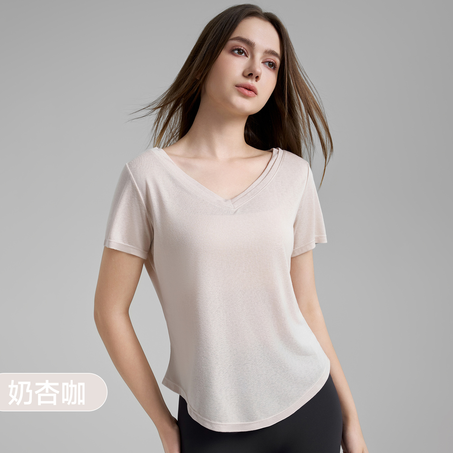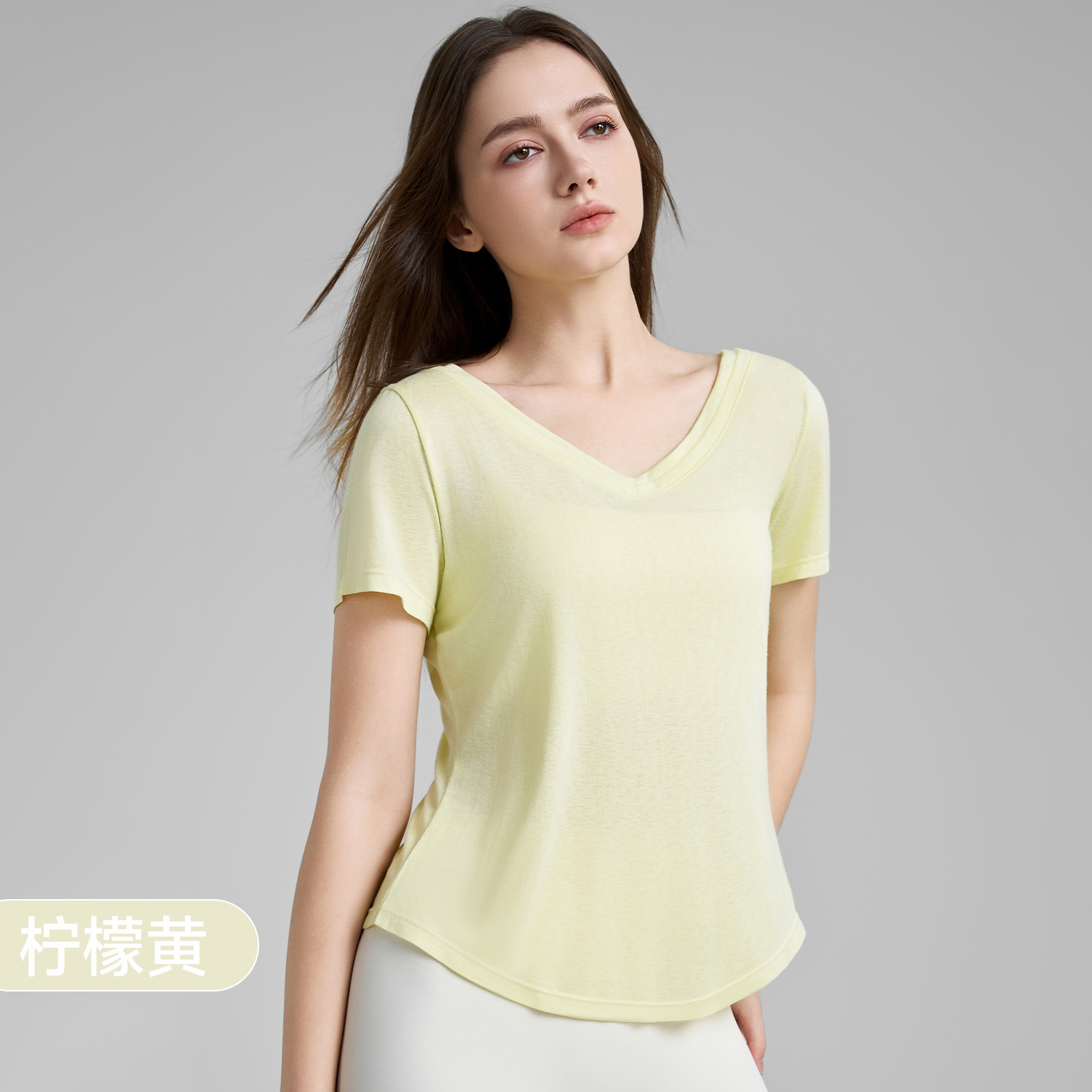 여성을위한 얇은 v 넥 스포츠 티셔츠 여름 새로운 누드 피트니스 반팔 느슨한 통기성 필라테스 요가 착용스토어 가기