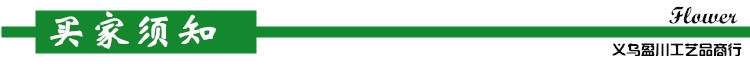 义乌盈川工艺品商行 经销批发的仿真花、圣诞花、金粉花、仿真花配件、仿真树畅销消费者市场,在消费者当中享有较高的地位,公司与多家零售商和代理商建立了长期稳定的合作关系。义乌盈川工艺品商行经销的仿真花、圣诞花、金粉花、仿真花配件、仿真树品种齐全、价格合理。义乌盈川工艺品商行实力雄厚,重信用、守合同、保证产品质量,以多品种经营特色和薄利多销的原则,赢得了广大客户的信任。
