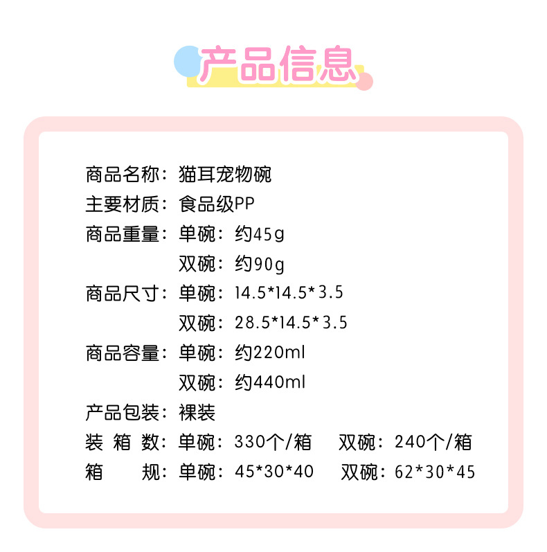 애완 동물 먹이 그릇 고양이 귀 디자인 고양이 그릇 뒤집기 방지 물 식품 통합 애완 동물 쌀 분지 고양이와 개를위한 유니버설 애완 동물 그릇