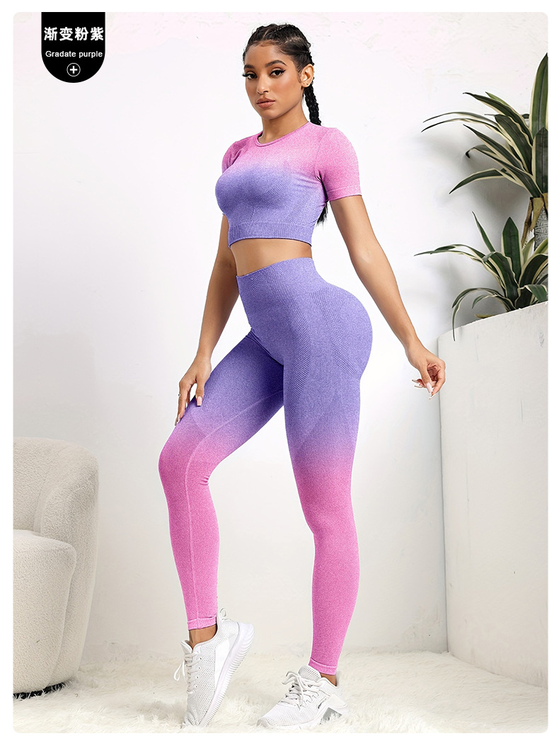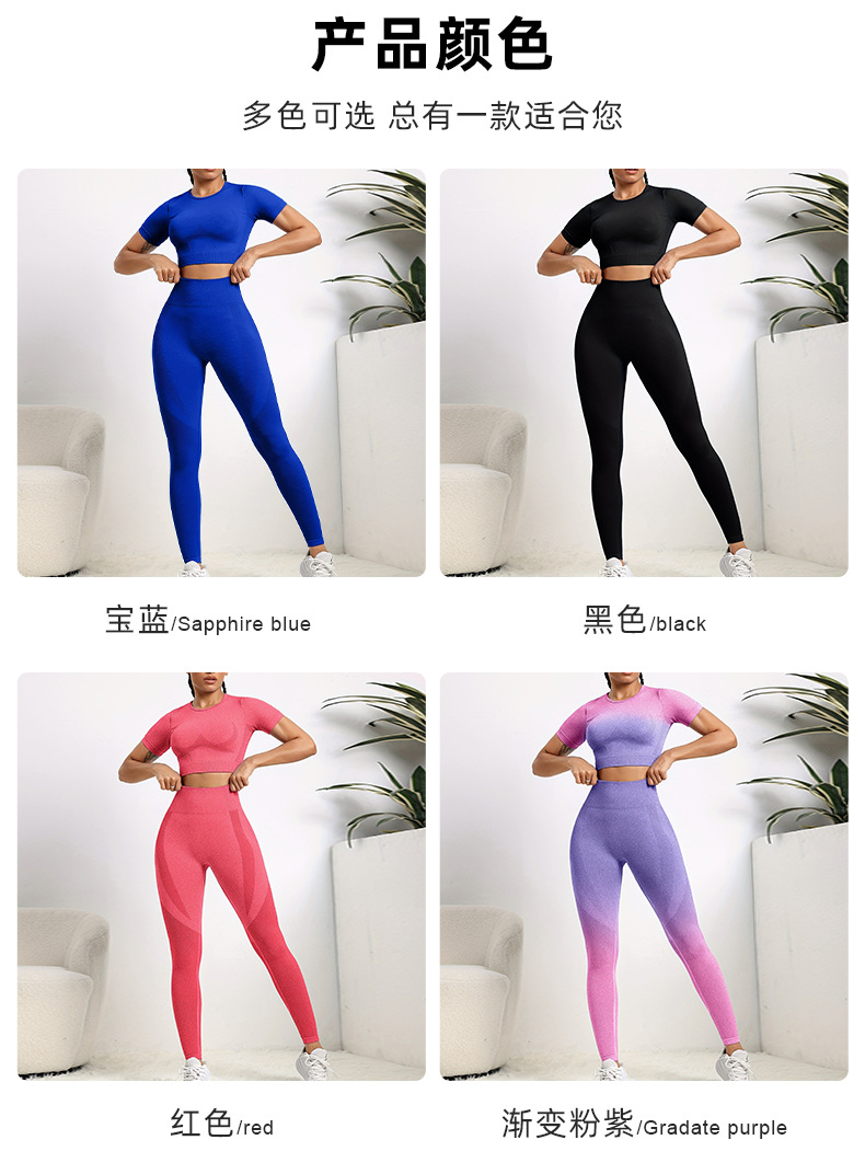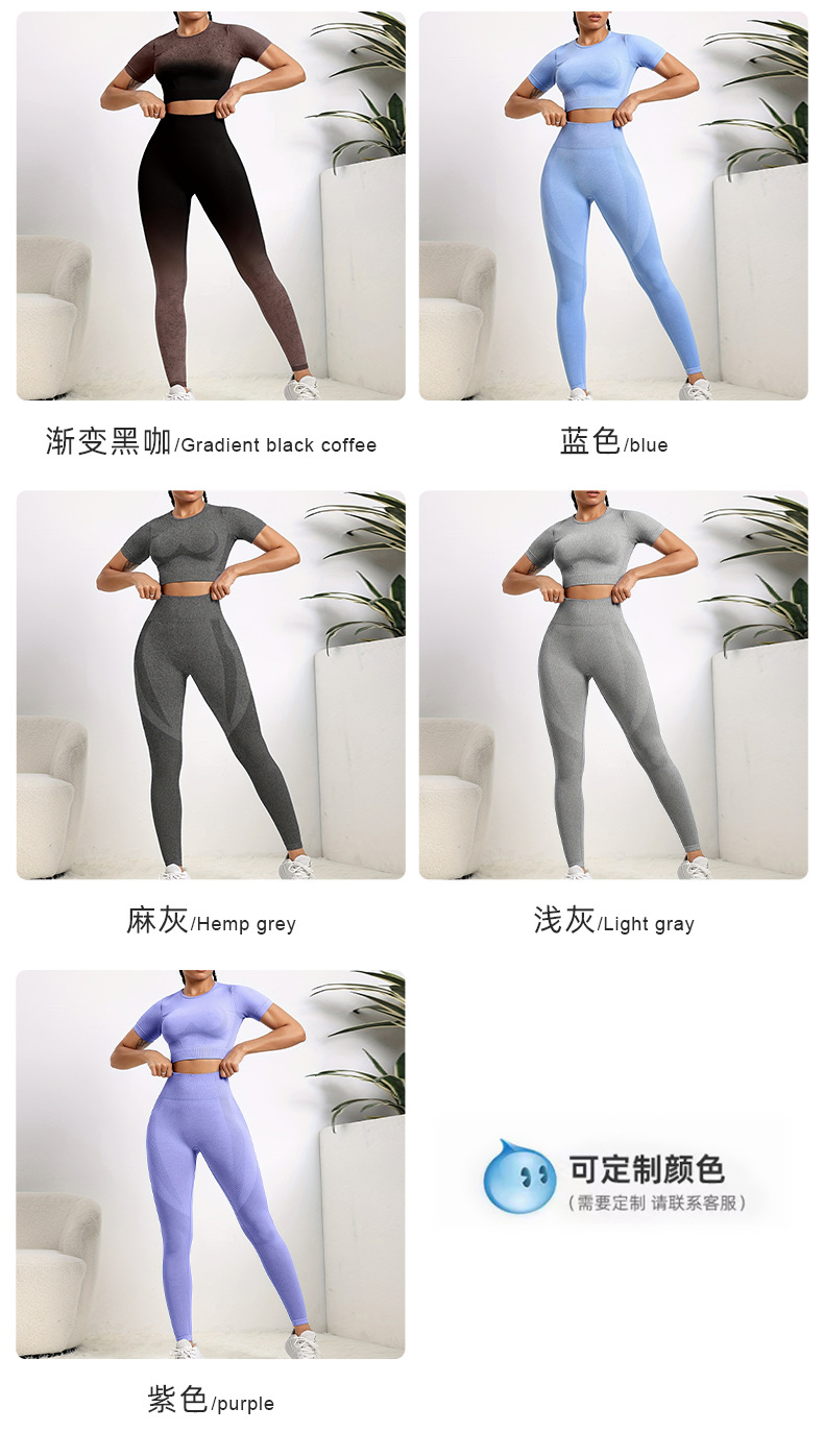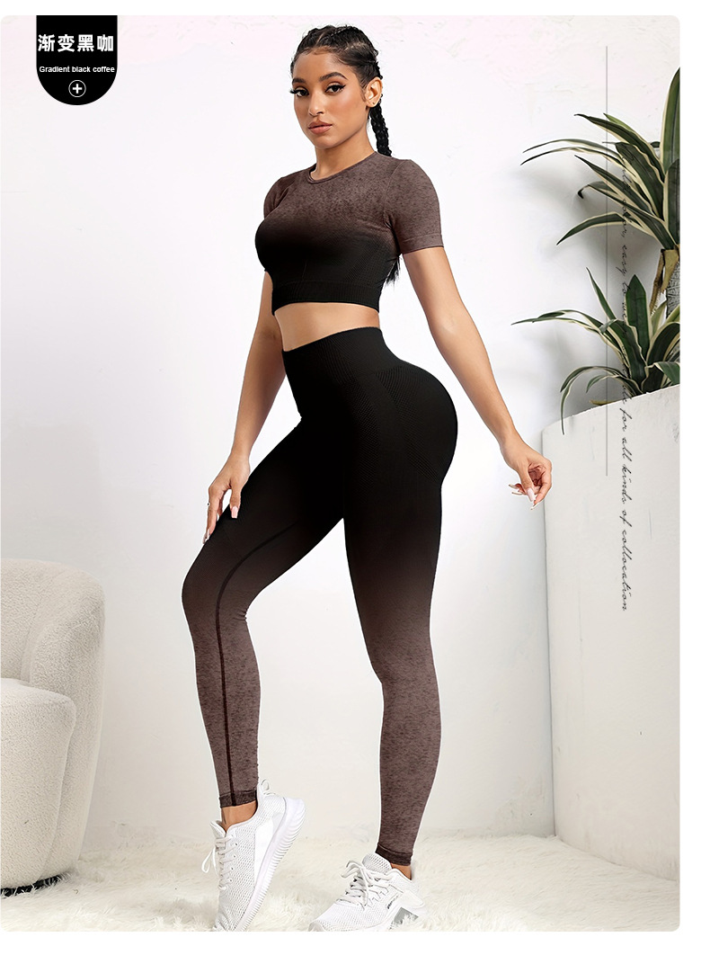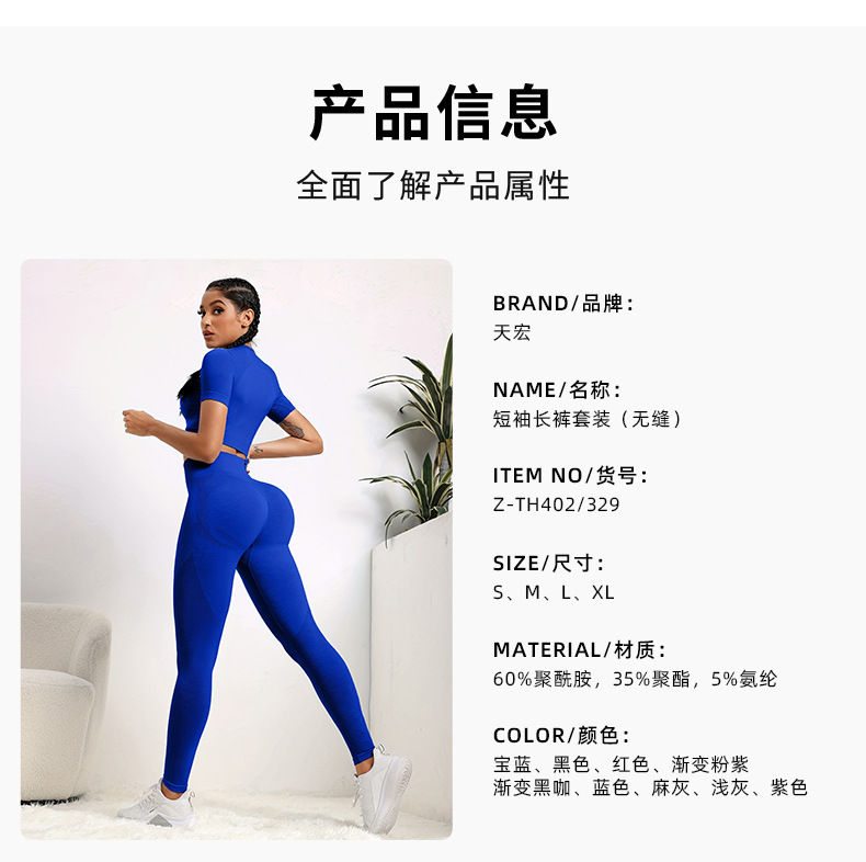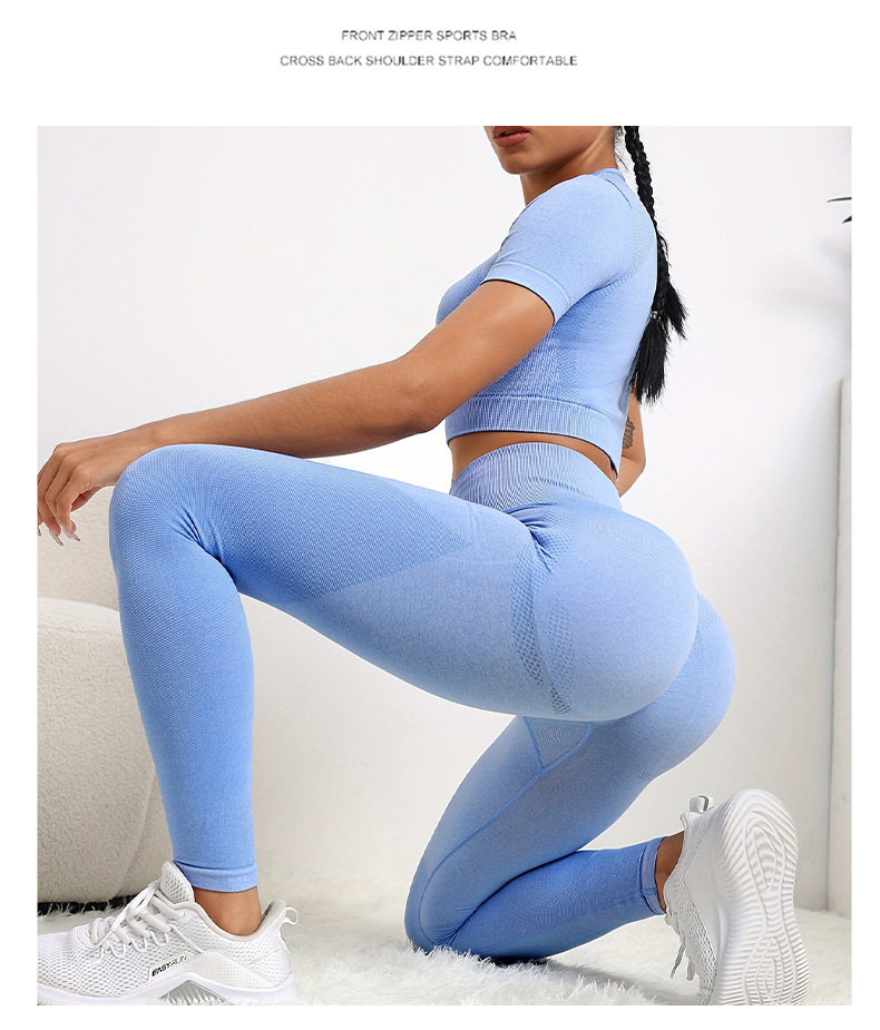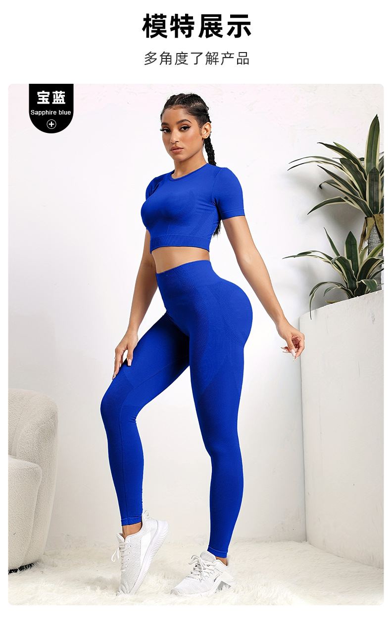국경 간 유럽과 미국의 원활한 요가 의류 반팔 바지 요가 세트 엉덩이 요가 바지 여성용 피트니스 의류스토어 가기