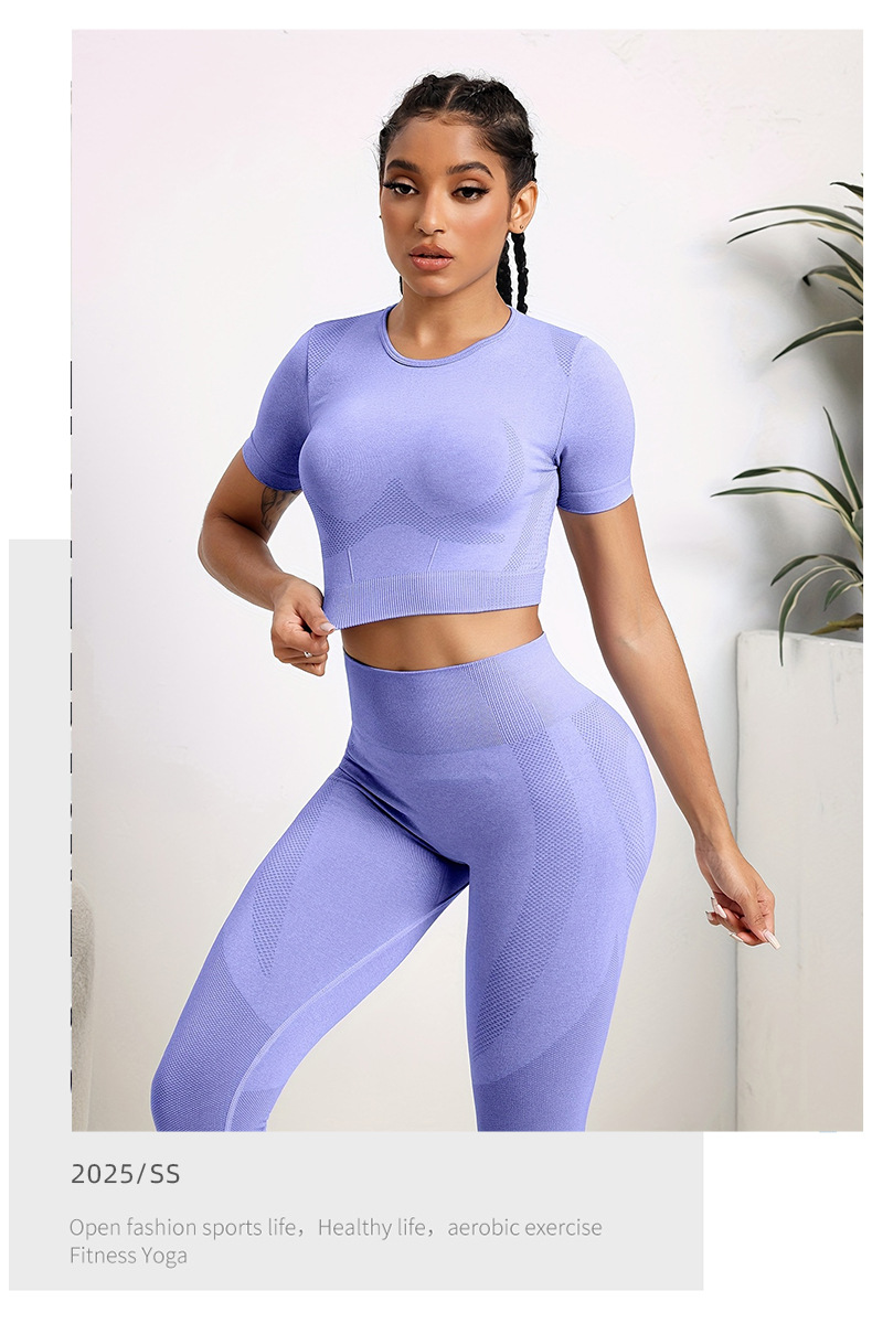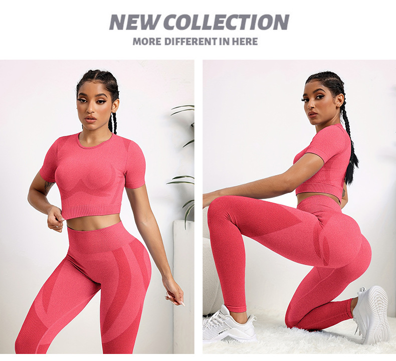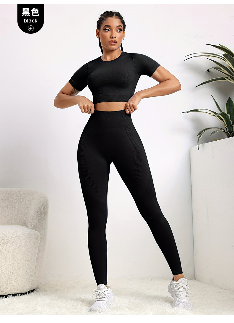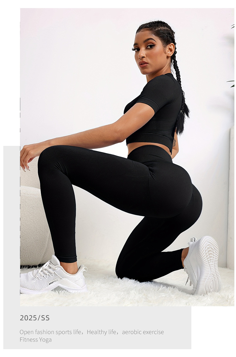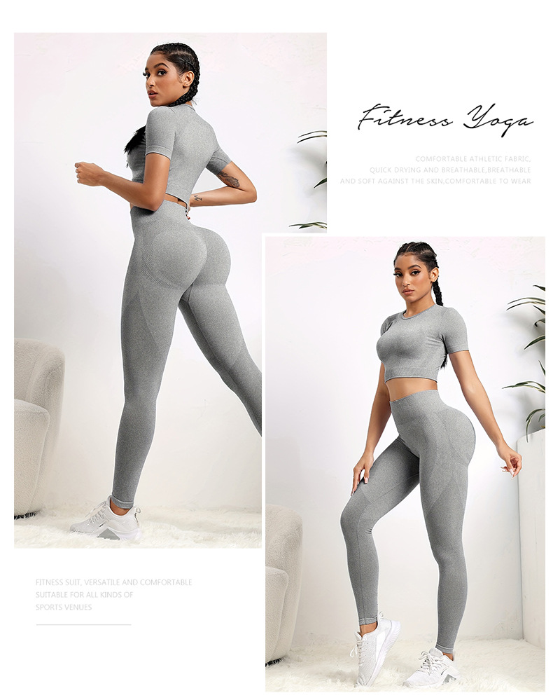 국경 간 유럽과 미국의 원활한 요가 의류 반팔 바지 요가 세트 엉덩이 요가 바지 여성용 피트니스 의류