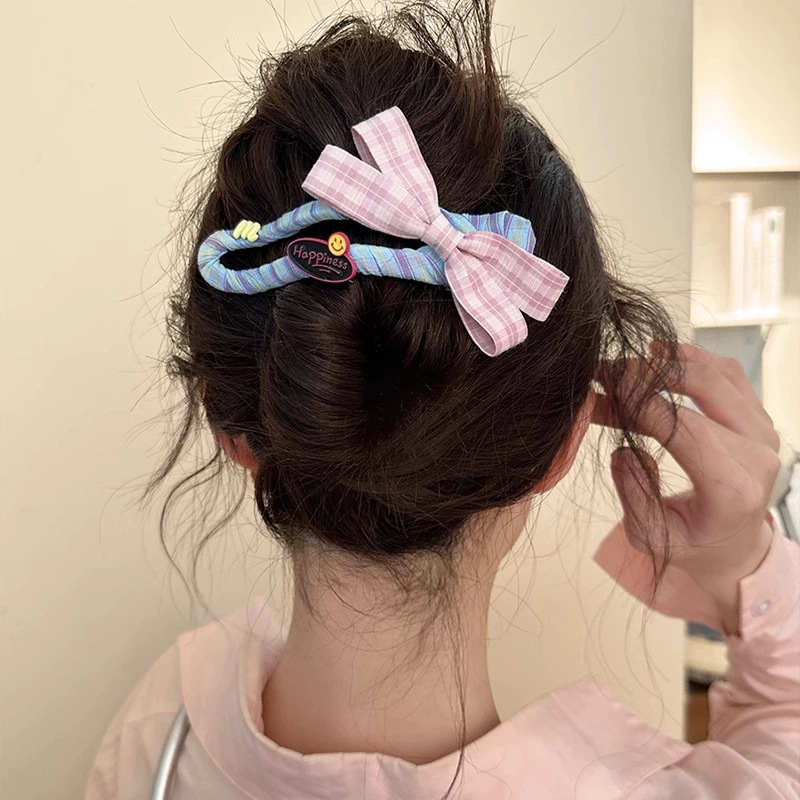 • 달콤한 체크 대비 리본 머리핀 T0964A