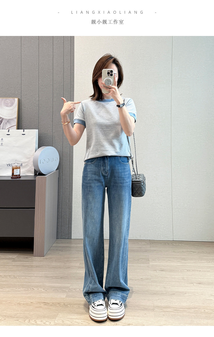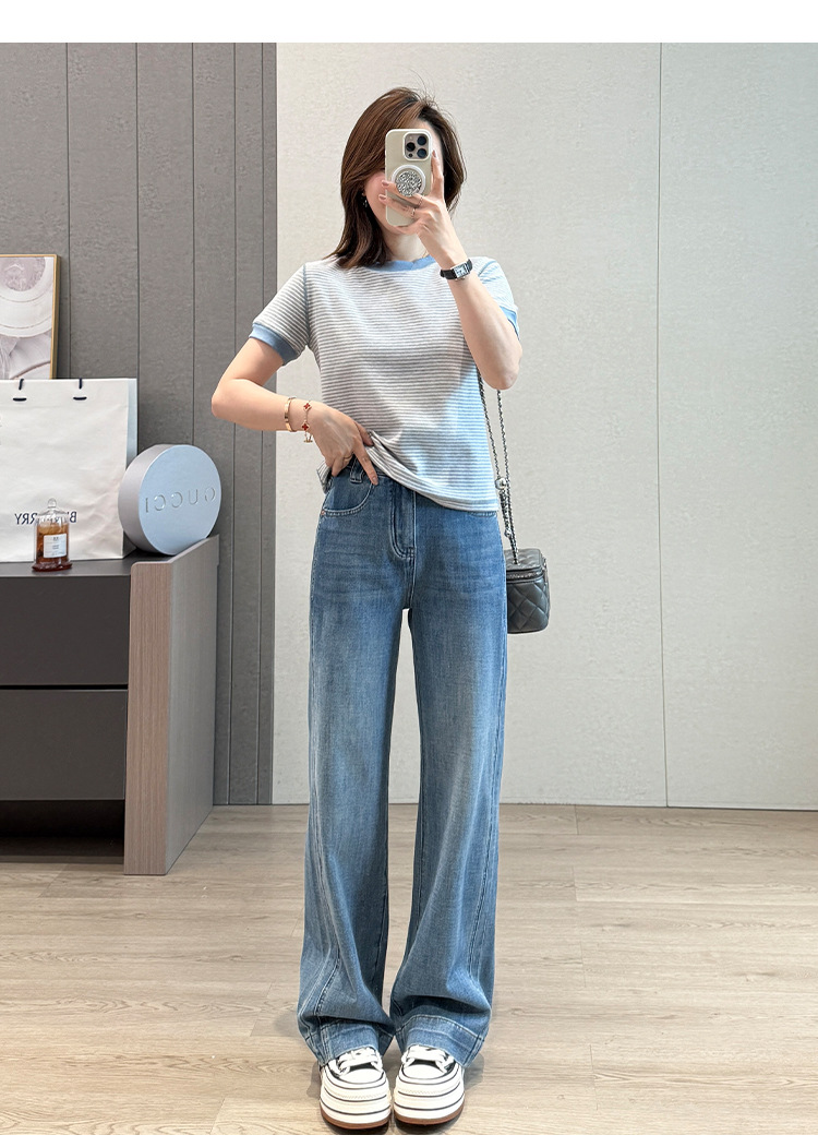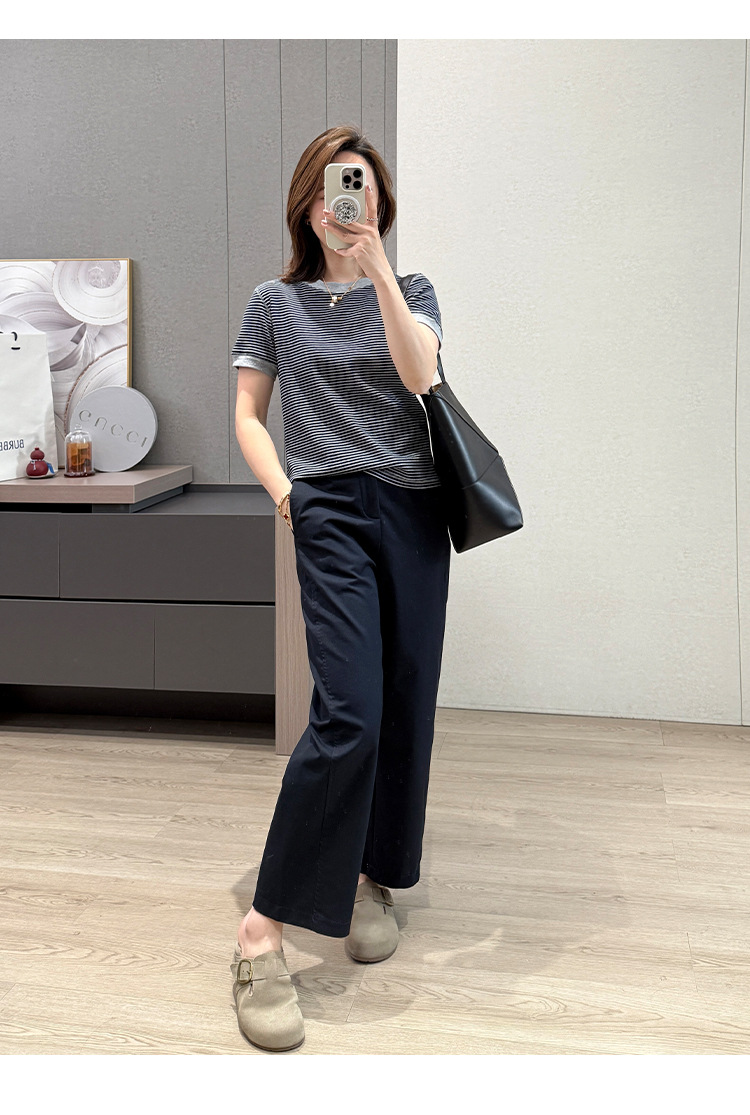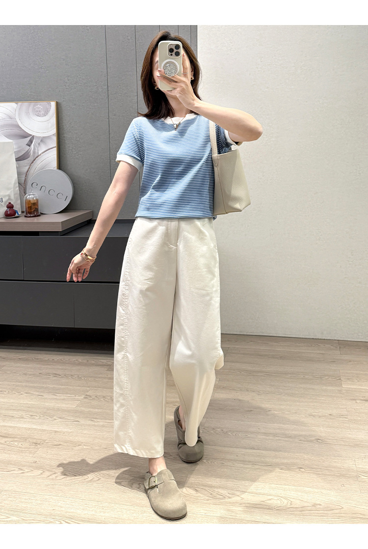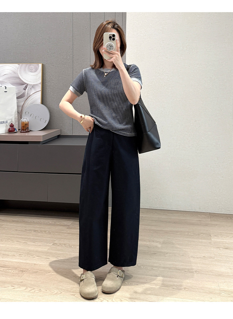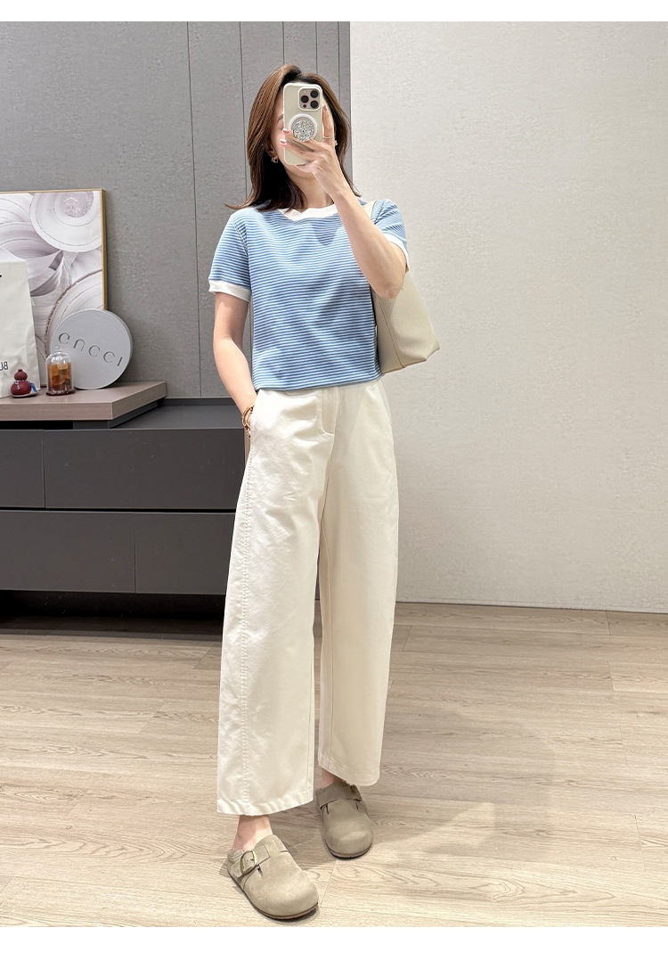 도니 DN 대비 색상 작은 줄무늬 화성 라인 짧은 소매 작은 티! 편안한 신장 면 둥근 목 짧은 어깨 탑스토어 가기