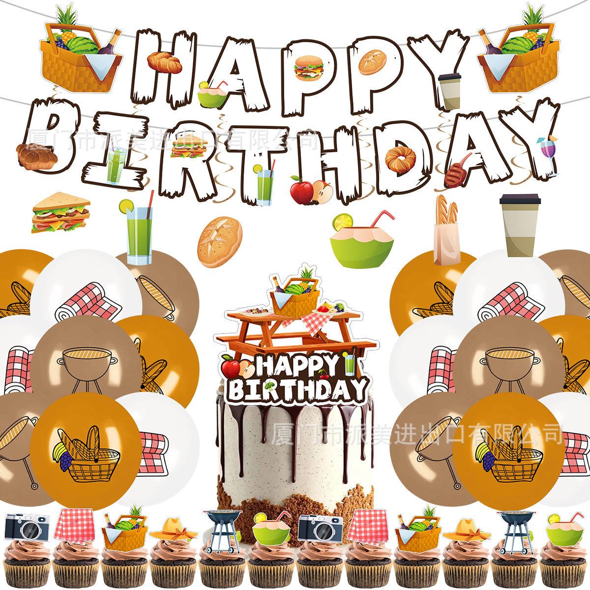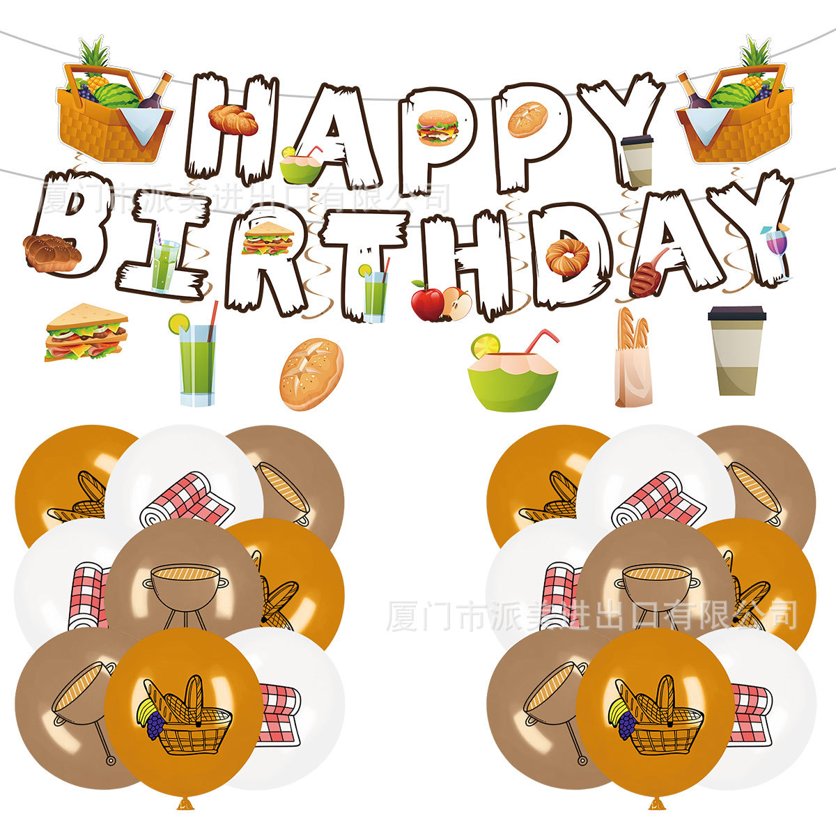 套装1包括:1条拉旗+18个乳胶气球+12个蛋糕插旗+1个蛋糕插牌+6条螺旋吊卡