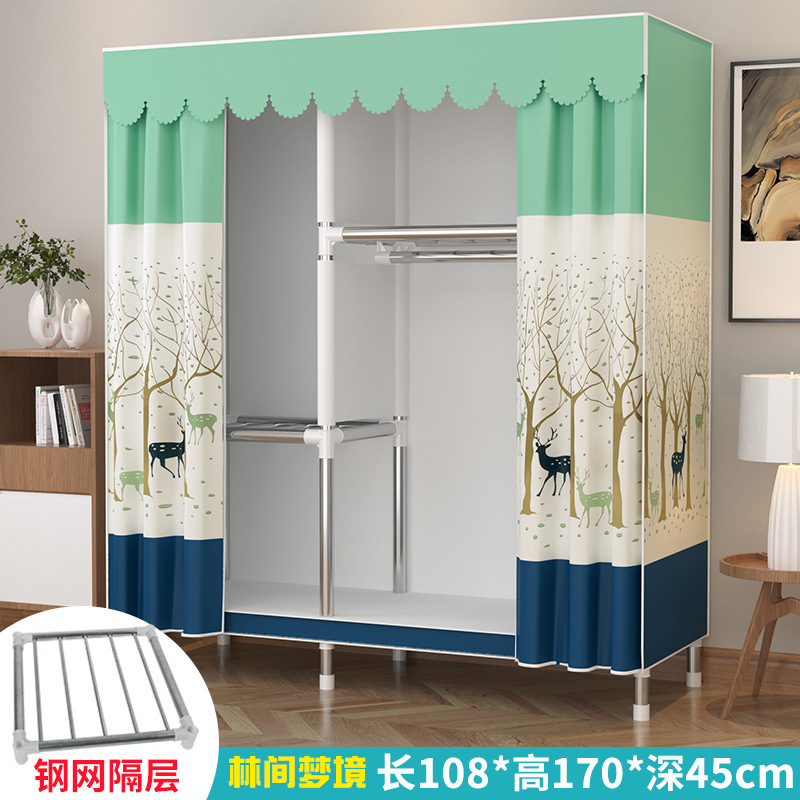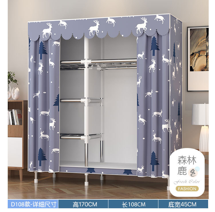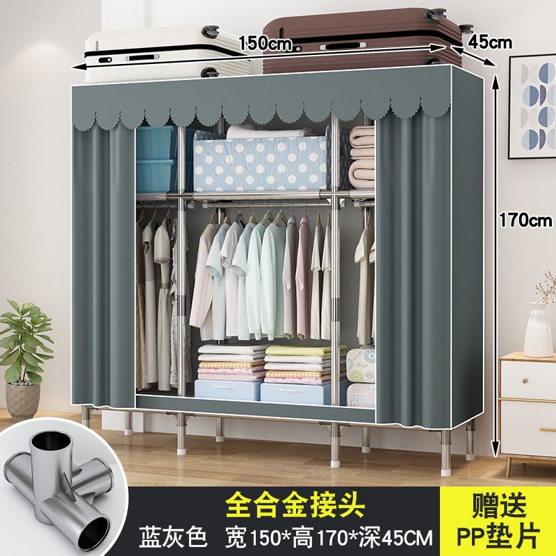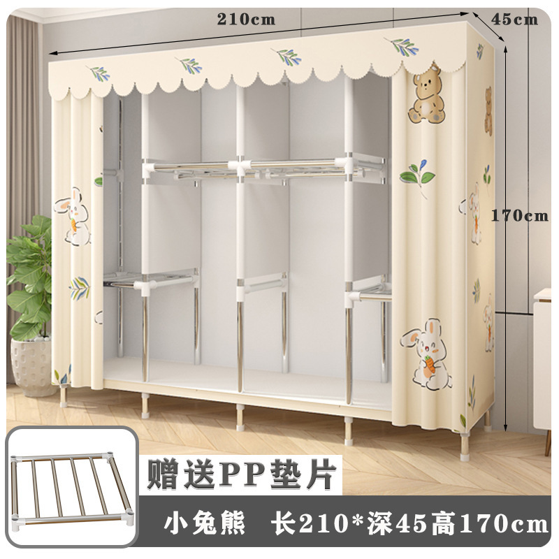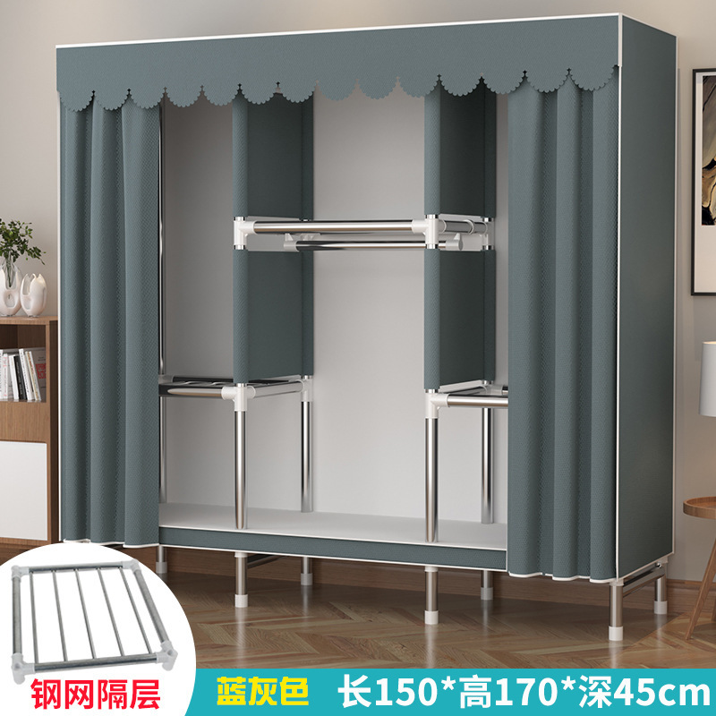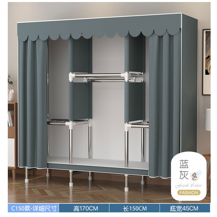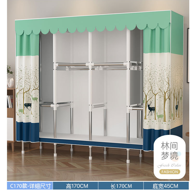 간단한 옷장 홈 임대 방 용 침실 천 옷장 강력하고 튼튼한 조립 간단한 현대 풀 스틸 프레임 옷장