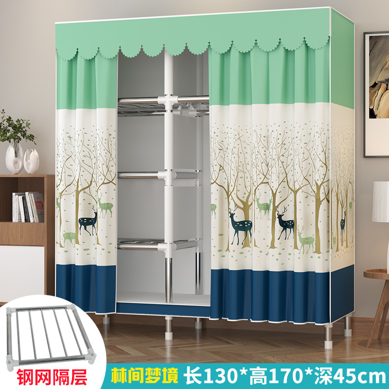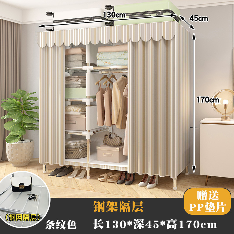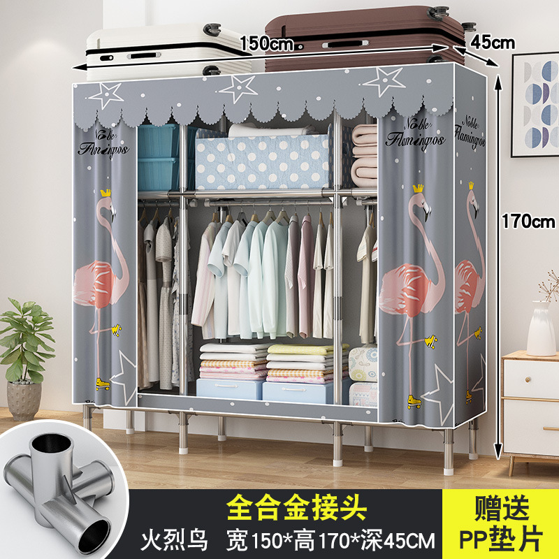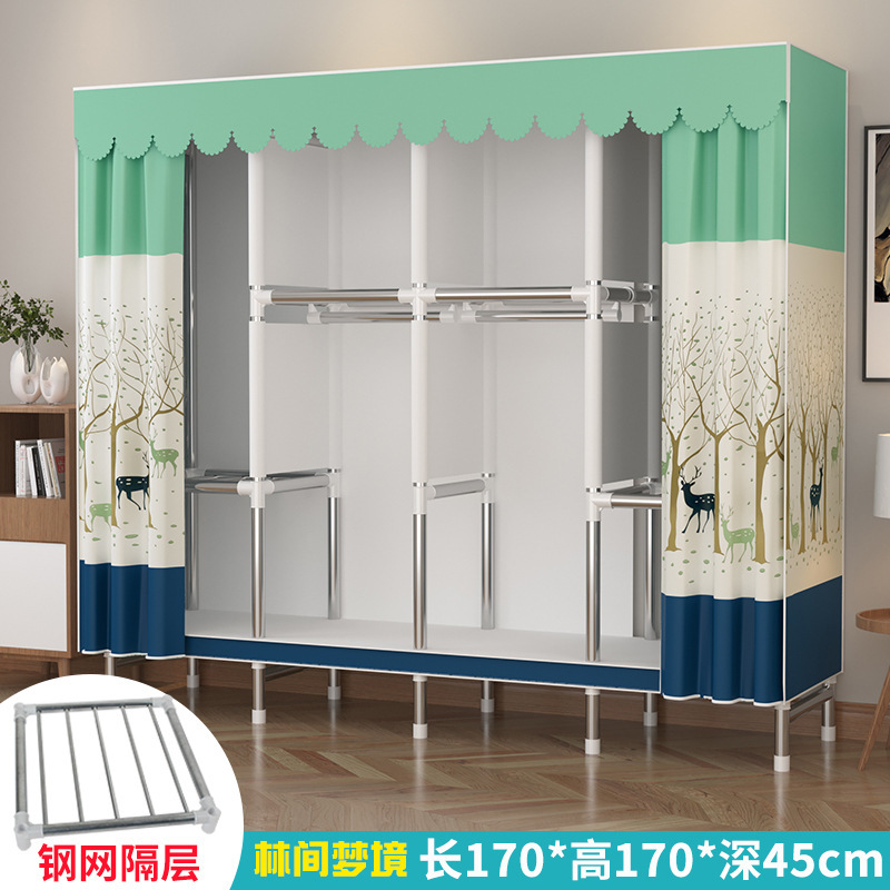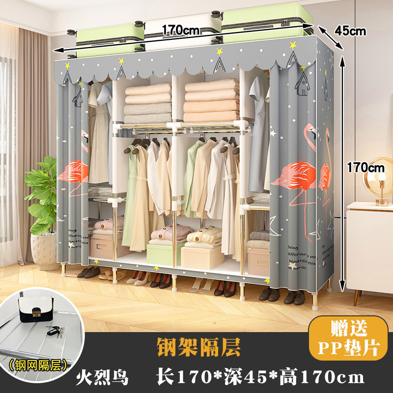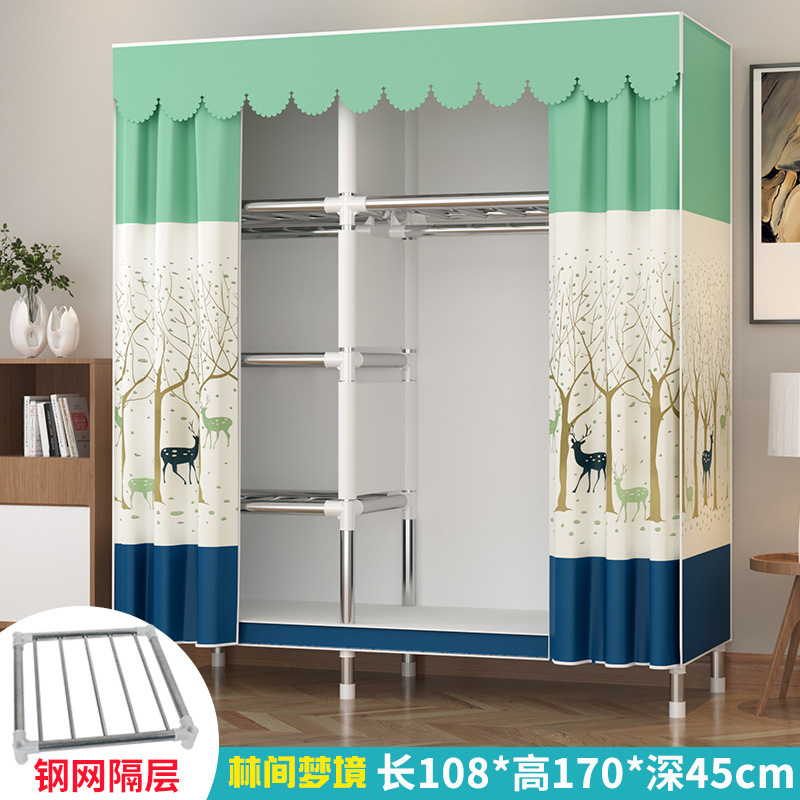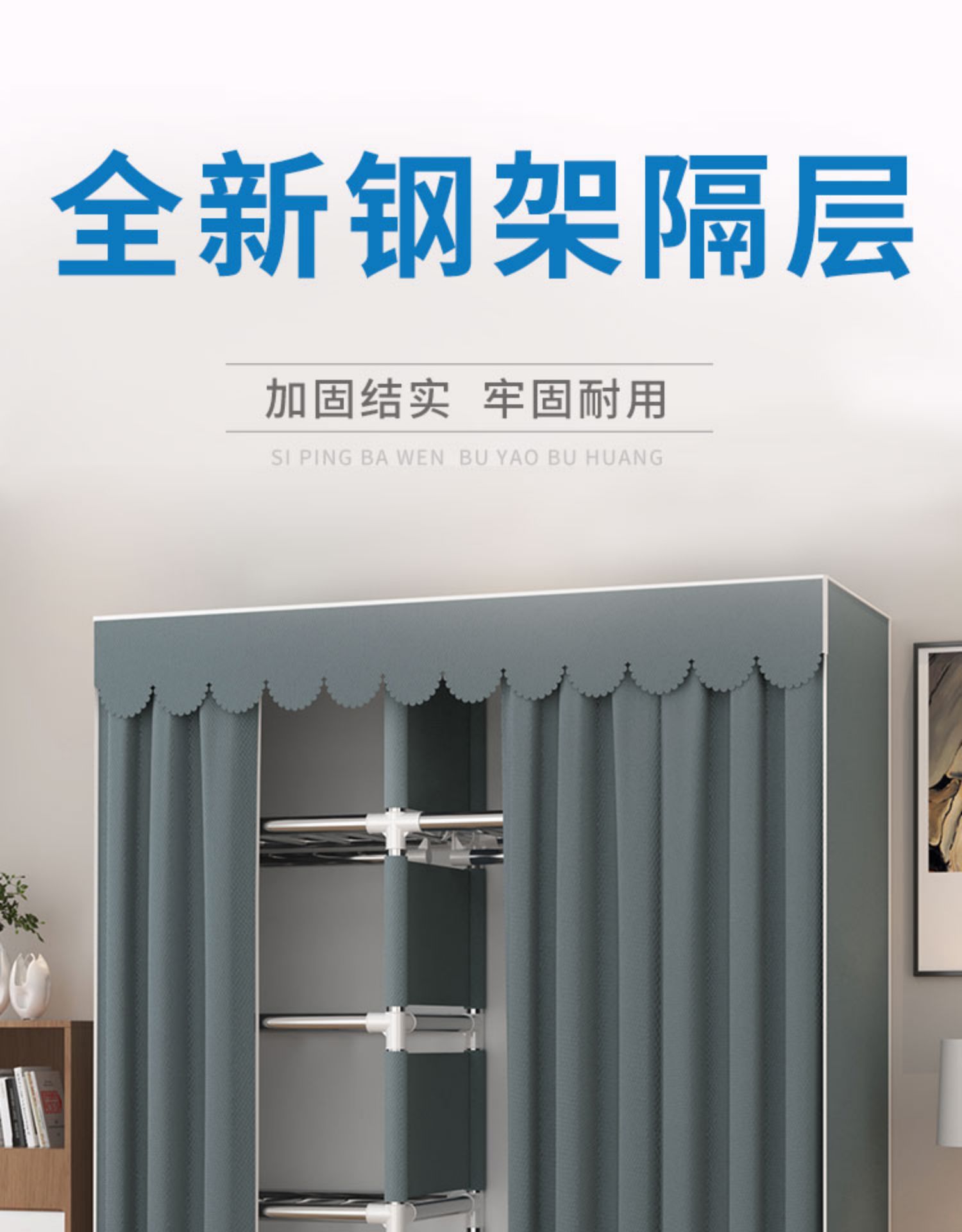 간단한 옷장 홈 임대 방 용 침실 천 옷장 강력하고 튼튼한 조립 간단한 현대 풀 스틸 프레임 옷장
