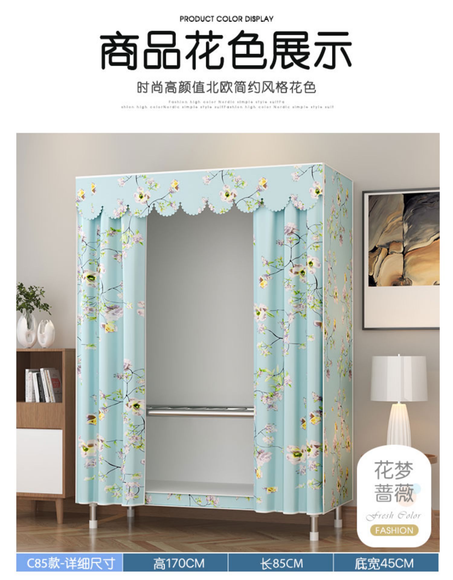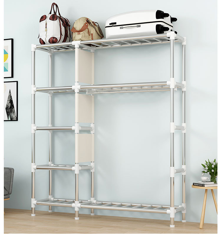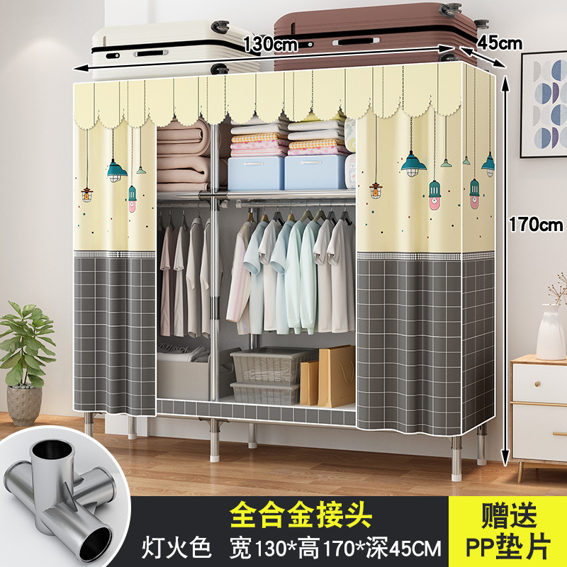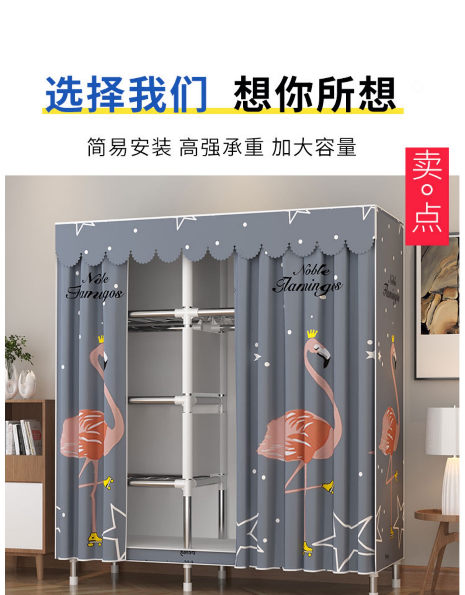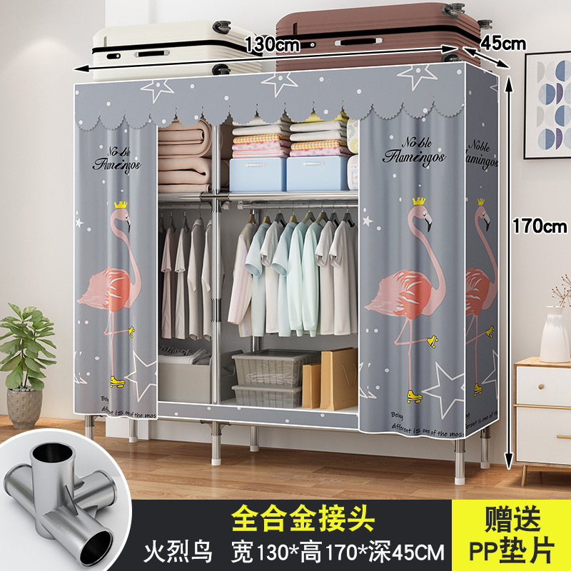 간단한 옷장 홈 임대 방 용 침실 천 옷장 강력하고 튼튼한 조립 간단한 현대 풀 스틸 프레임 옷장