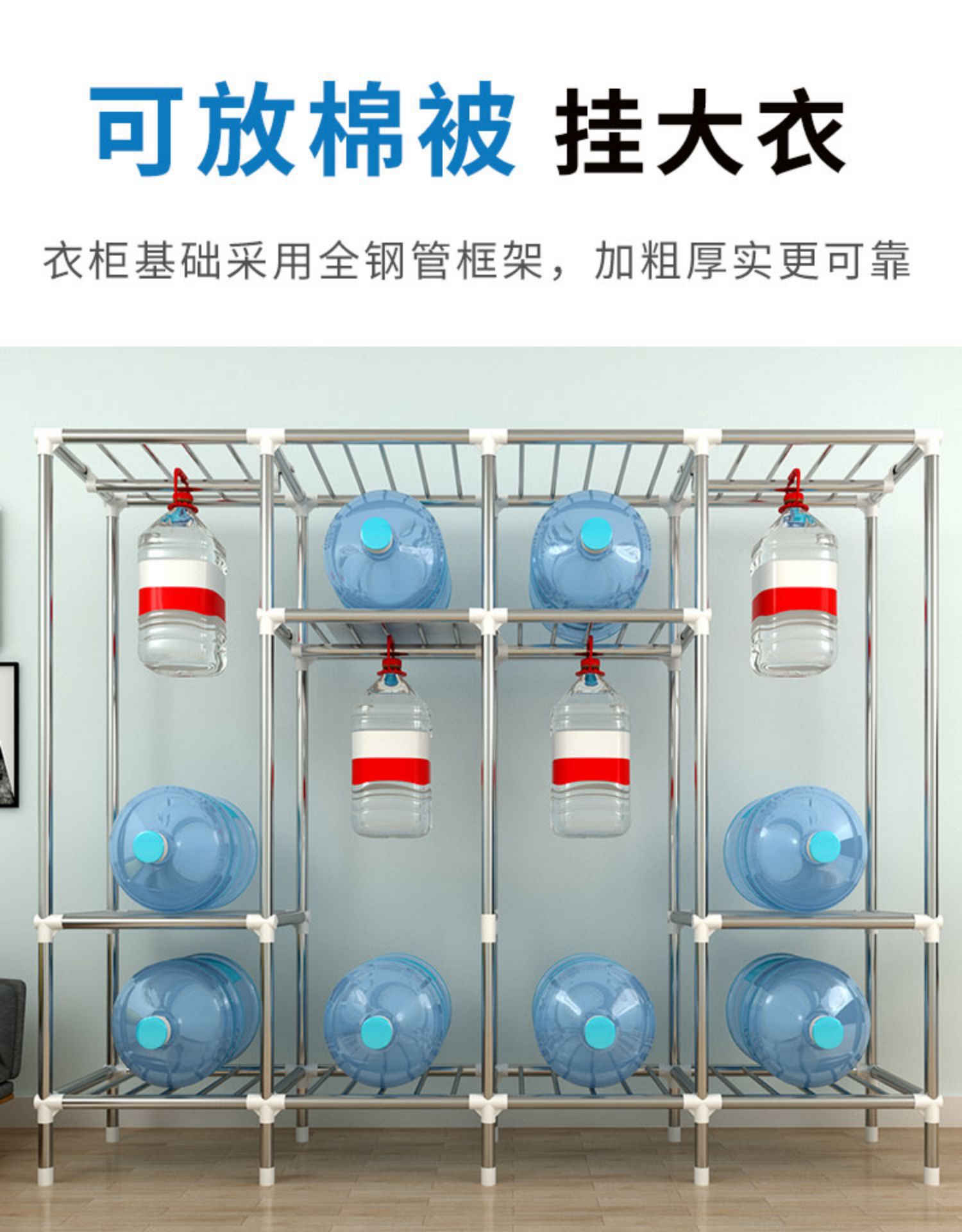 간단한 옷장 홈 임대 방 용 침실 천 옷장 강력하고 튼튼한 조립 간단한 현대 풀 스틸 프레임 옷장스토어 가기