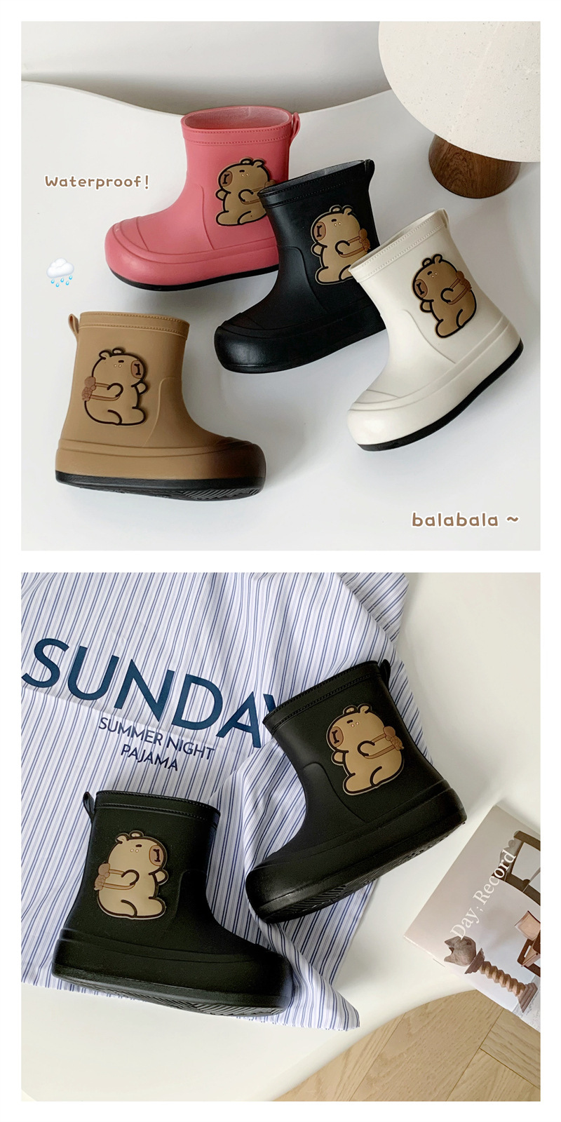 한국식 카피발라 장화 여성 미끄럼 없는 중년 어린이 따뜻한 부모-자식 장화 학교 물장화 학생 장화스토어 가기