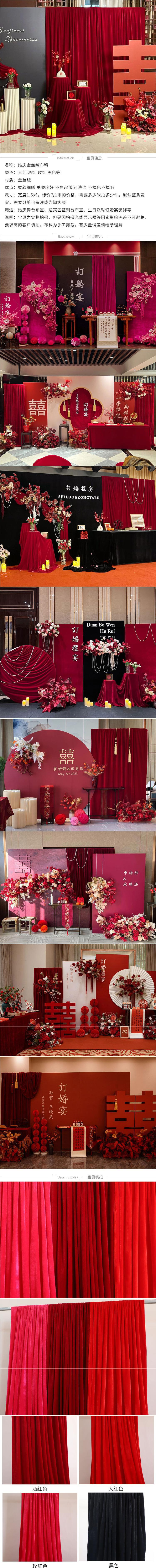 웨딩 골든 벨벳 천 베일 웨딩 연회 장식 레드 버건디 벨벳 천 웨딩 사이트 장식 베일스토어 가기