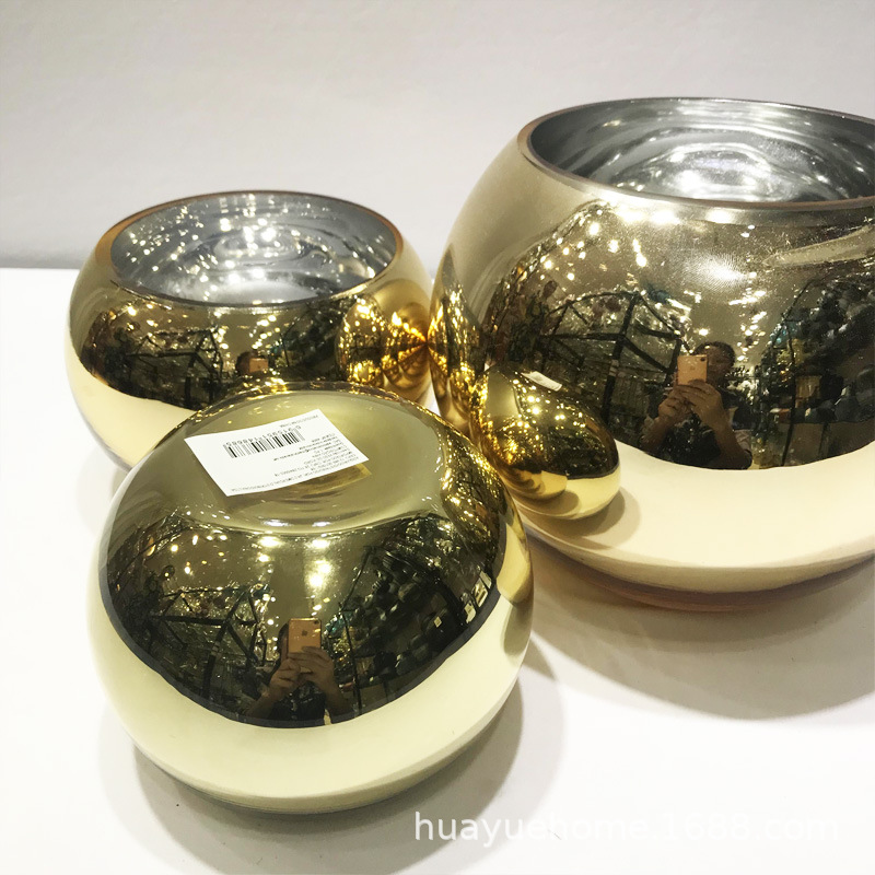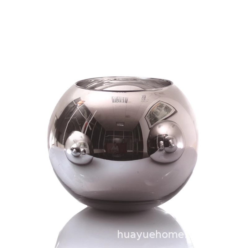 유럽의 창조적 인 전기 도금 실버 거울 유리 꽃병 둥근 황금 구형 꽃병 레스토랑 거실 장식 가구스토어 가기