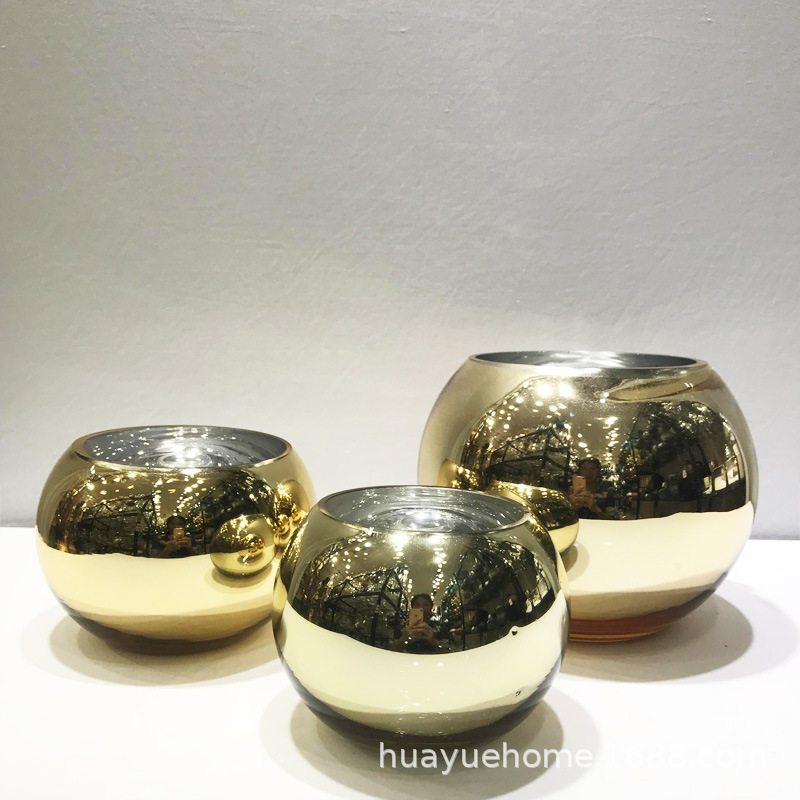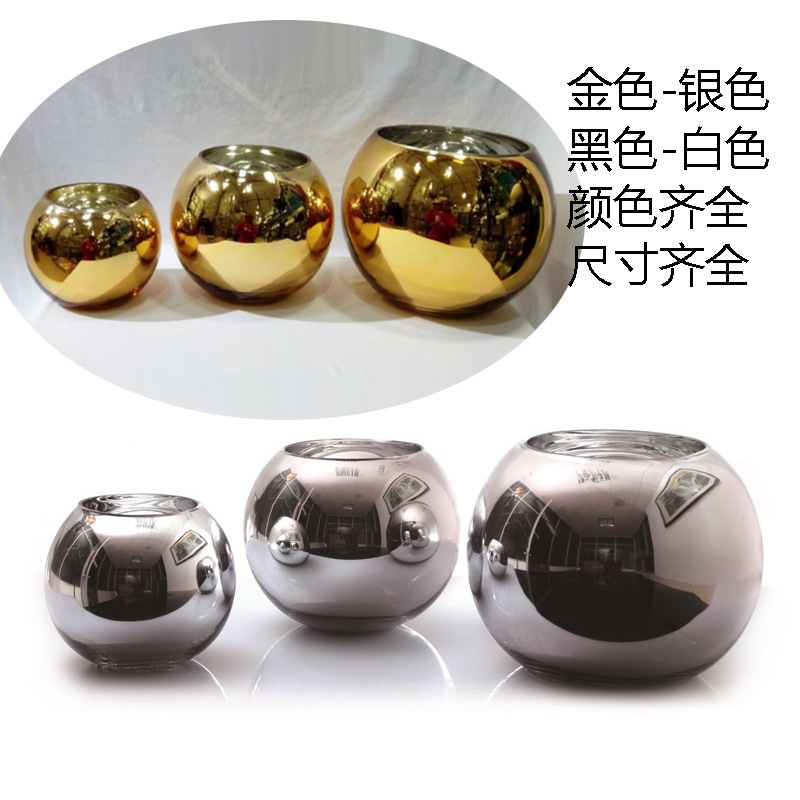 유럽의 창조적 인 전기 도금 실버 거울 유리 꽃병 둥근 황금 구형 꽃병 레스토랑 거실 장식 가구