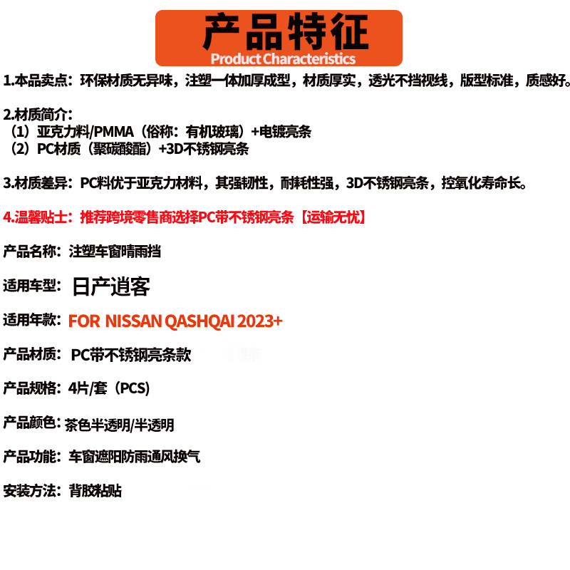 닛산 Qashqai 2023 NISSAN QASHQAI 6pcs 윈도우 바이저를 위한 비와 비를 위해 적당한스토어 가기
