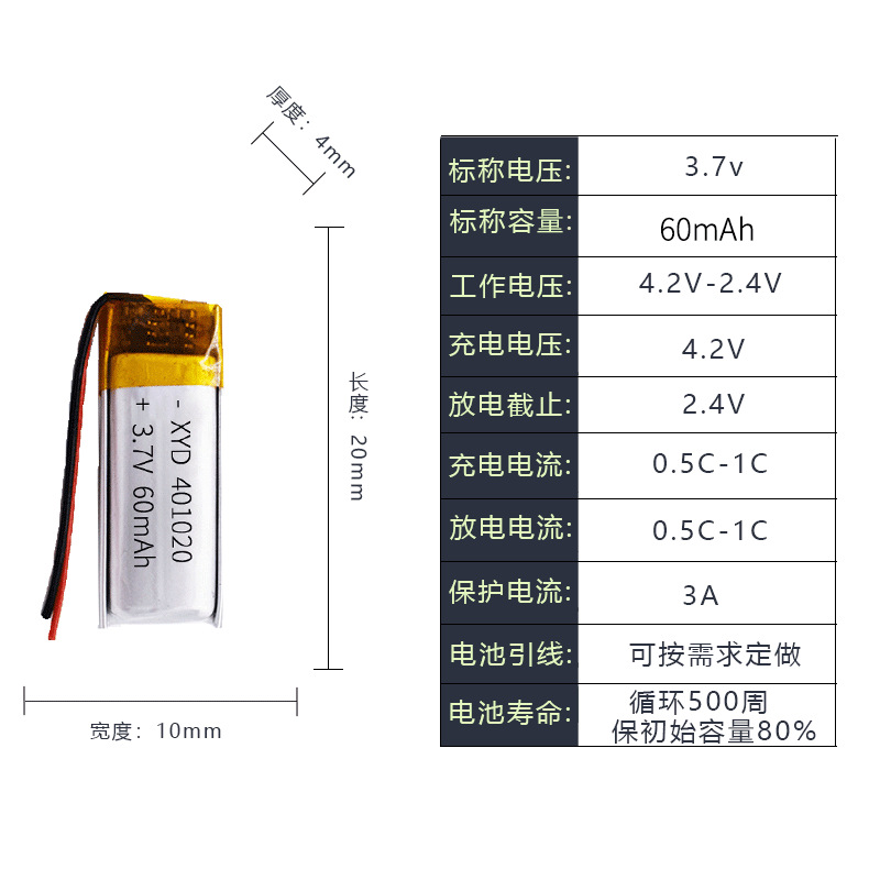 401020 폴리머 리튬 배터리 60mAh 목 블루투스 헤드셋 포인트 읽기 펜 스마트 팔찌 충전식 3.7V스토어 가기