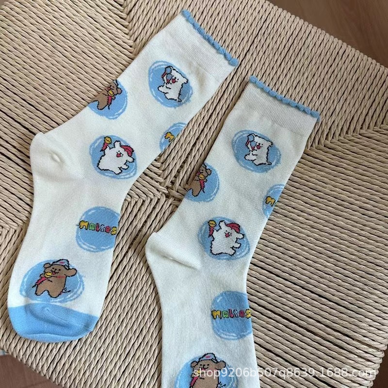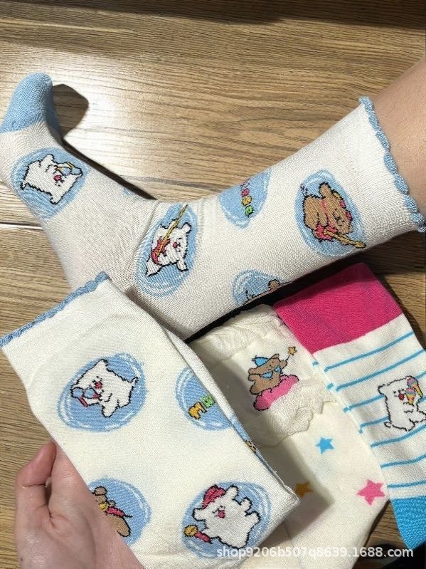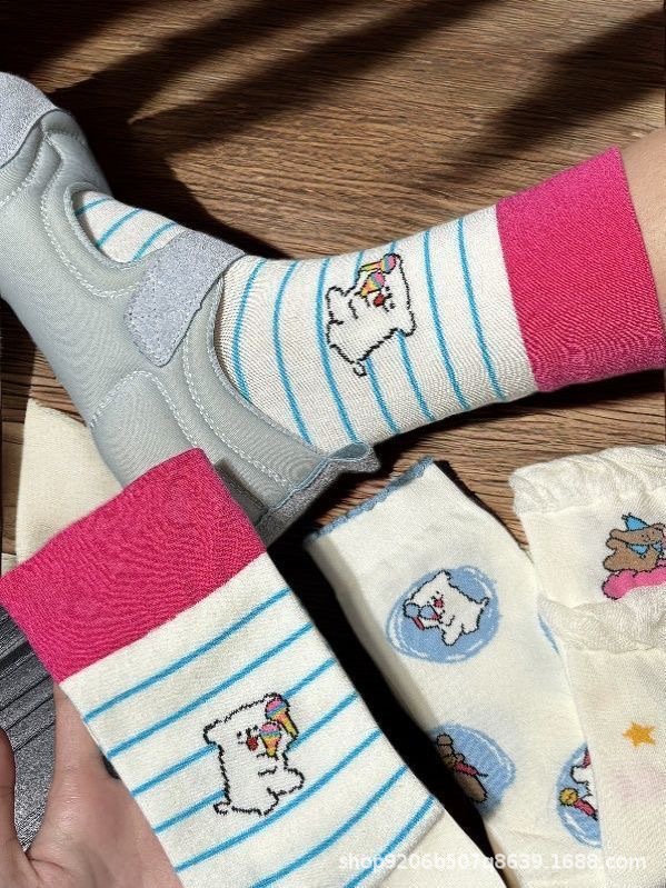 [3 쌍] 버블 레이스 양말 어린이 여름 얇은 중공 메쉬 일본 귀여운 강아지 양말스토어 가기